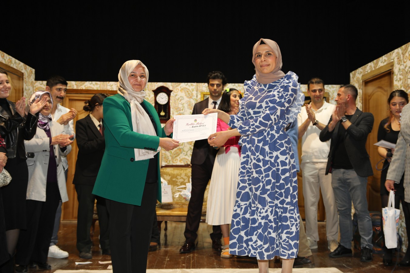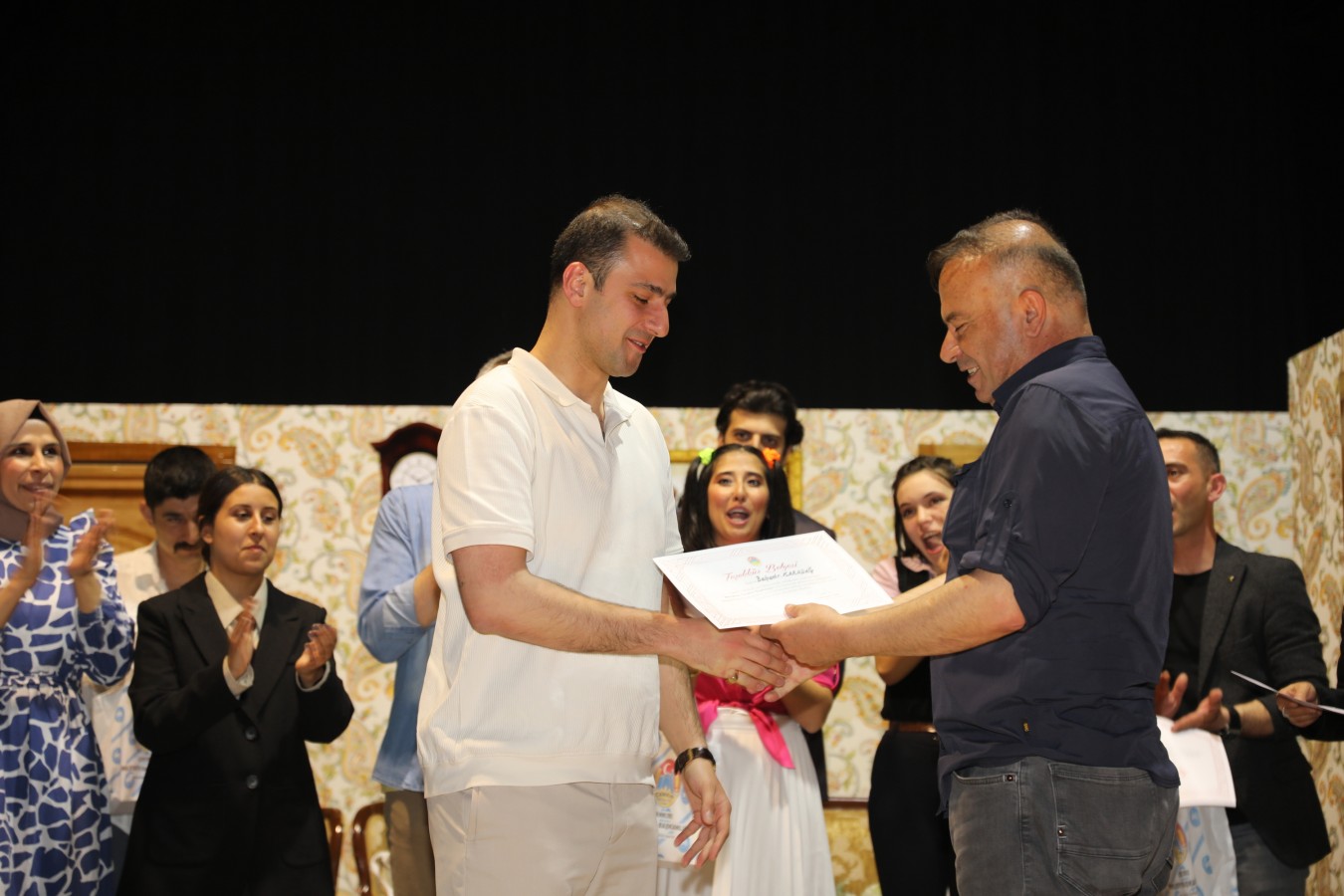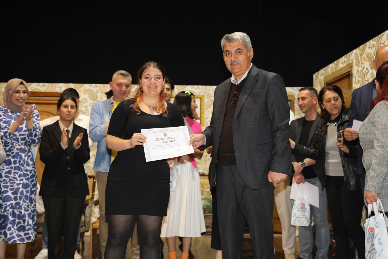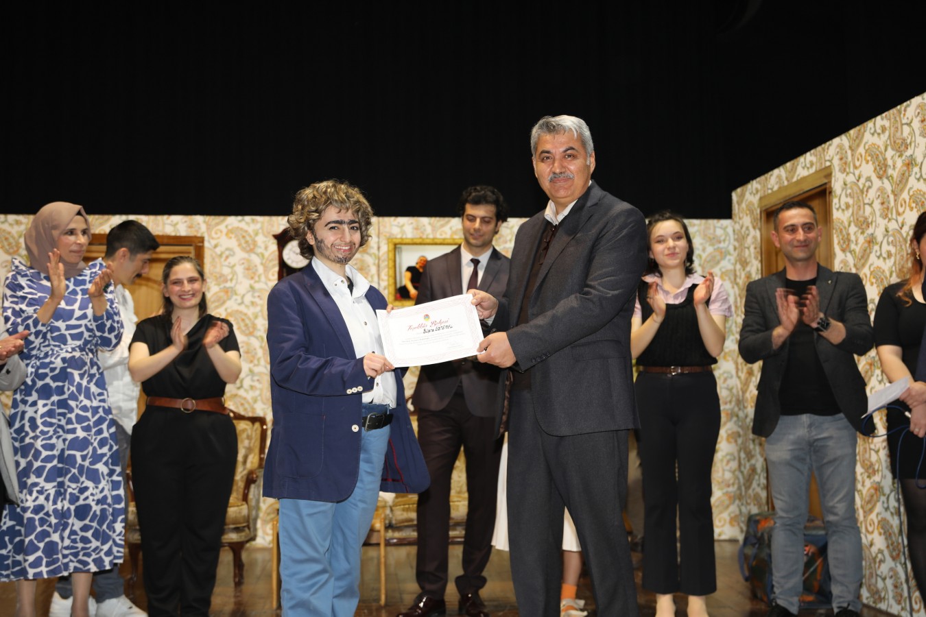 Oyunculara teşekkür belgelerini Belediye Başkanı İsmail Hakkı Esen ve protokol takdim etti. Başkan Esen, Çankırı Belediyesi bünyesinde oluşturdukları tiyatro topluluğunun önemli yetenekler çıkartacağını ilk performansları ile gördüklerini söyleyerek, bu topluluğun çalışmalarının aktif bir şekilde sürdüreceklerini belirtti. Çankırı halkını sosyal ve kültürel faaliyetler ile daha çok buluşturacaklarını ifade eden Esen, salonu dolduran vatandaşlara, keyifli bir oyun sahneleyen oyunculara ve emeği geçen herkese teşekkür etti.