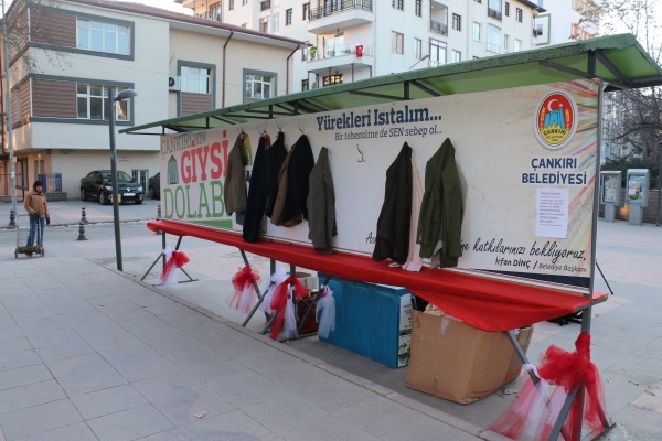 Bir ay önce ihtiyaç sahiplerinin yararlanması adına Karatekin Parkı'na yerleştirilen giysi dolabına asılan giysiler, soğuk kış aylarında ihtiyaç sahibi vatandaşları ısıtmaya devam ediyor. Çankırı Belediyesi tarafından başlatılan ve veren elin alan eli görmediği giysi dolabı kampanyasından bir ayda yaklaşık 3 bin 500 ihtiyaç sahibi vatandaş yararlandı.