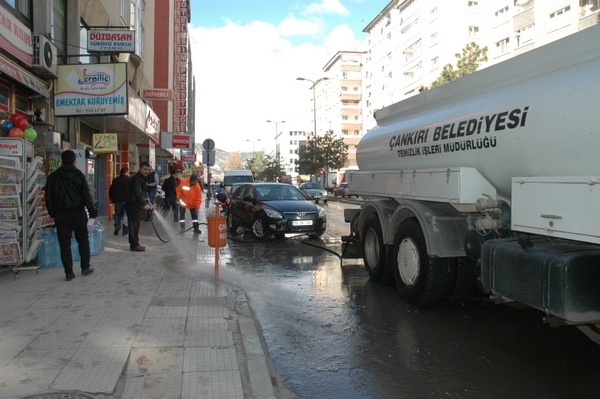 Çankırı Belediyesi ekipleri kış mevsimini tamamladığımız şu günlerde ana arterler, cadde ve sokaklarda bahar temizliğini sürdürüyor. Geçtiğimiz yıla oranla daha az kar yağışı ve soğukların yaşandığı Çankırı’da cadde ve sokaklar ile kaldırımlarda oluşan toz birikintileri çevre kirlenmesine neden olmuştu. Hem şehir içi cadde ve sokaklardaki çamurları hem de toz birikintilerini tazyikli su ile temizleyen Temizlik Müdürlüğü ekipleri, bir haftadır devam eden tazyikli su ile havaların ısınmasını fırsat bilerek şehrin temizlik taramasından geçirildiğini belirttiler.