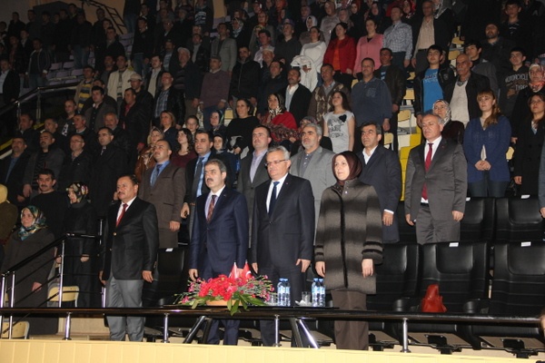 Hasan Fehmi Gökşen Spor Salonu’nda Kur’an-ı Kerim tilaveti ile başlayan programda şehitlerimiz için dualar edildi. Tarihin akışını değiştiren Çanakkale destanı, Cihan Yıldız tarafından seslendirilen türkülerle anıldı. Salon, türkülere büyük bir coşku ile eşlik eden vatandaşların sesi ile doldu.