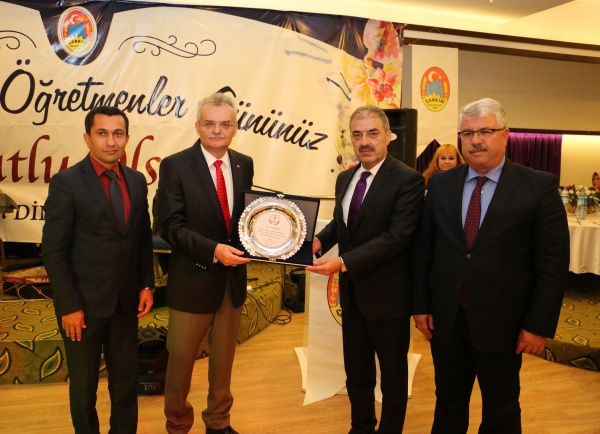 Programa katılan Vali Vahdettin Özcan ile Milli Eğitim Müdürü Yusuf Yazıcı, maddi ve manevi desteklerini eğitim camiasından esirgemeyerek eğitim alanında yaptığı ciddi çalışmalardan dolayı Dinç’e teşekkür ederek plaket takdim etti.