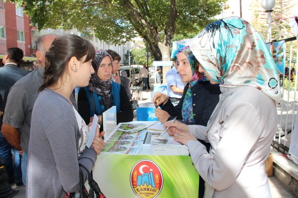 Üniversite Rektörlük bahçesinde kurulan bilgilendirme standında Çankırı Belediyesi, öğrenci ve velileri ile görüşerek ihtiyaç belirtilen konularda onlara yol gösteriyor. Ulaşımdan barınma ihtiyacına kadar birçok soruna çözüm önerileri sunan belediye yetkilileri, şehre ilk defa gelen öğrenci ve ailelerinde Çankırı hakkında iyi izlenimler bırakmaya çalışıyor. Stantta Çankırı’ya ait tanıtım broşürleri dağıtılırken şehre özel kızılcık şerbeti de ikram ediliyor.