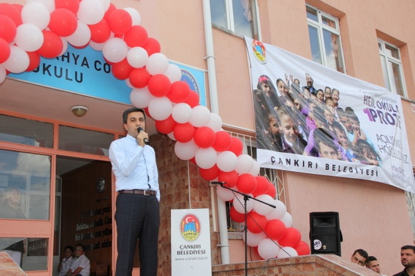 Eğitim alanındaki çalışmalar zincirine her seferinde birkaç halka daha eklediklerini belirten Belediye Başkanı İrfan Dinç “Okullarımızda öğretimin dışında eğitim de ağır bassın istiyoruz. Sosyal hayatın birçok gerekliliklerini okullara taşıyoruz. Z kütüphaneler, bilgisayarlar, kitaplar, internet evleri, bahçe satrançları, basketbol potası, masa tenisi, çevre düzenlemeleri, tefriş çalışmaları, çok amaçlı salonlar, teknolojik donanım eksikliklerin giderilmesi bu çalışmalarımızın bir bölümünü oluşturuyor. Çankırı’da yaşayan çocuklarımızın diğer çocukların gerisinde kalmadan hayatı ve geleceği yakalamalarını istiyoruz. Bunun için de her okula bir proje çalışmamız önümüzdeki yılda da devam edecek. Zira biz, bu çalışmalarımız sonucunda çocuklarımızın, dahası öğretmenlerimiz ile müdürlerimizin yüzlerindeki memnuniyeti ve gülümsemeyi gördük, bu da bize büyük bir şevk oldu.” diye konuştu.