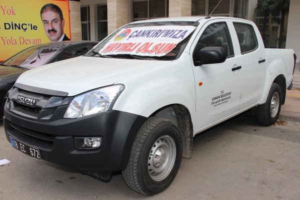 2013 model ISUZU Dmax marka 4x4 çift kabin arazi aracı zorlu kış şartlarında Çankırı Belediyesine hizmet verecek. Çankırı'ya daha iyi ve kaliteli hizmet için çalışmalarını sürdüren Çankırı Belediyesi, alınan yeni araçla birlikte, her türlü şartlarda mücadelelerini sürdürecek.