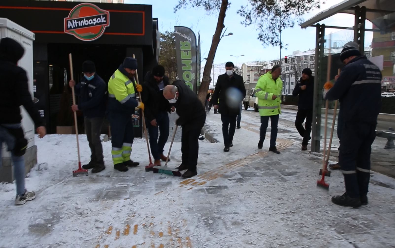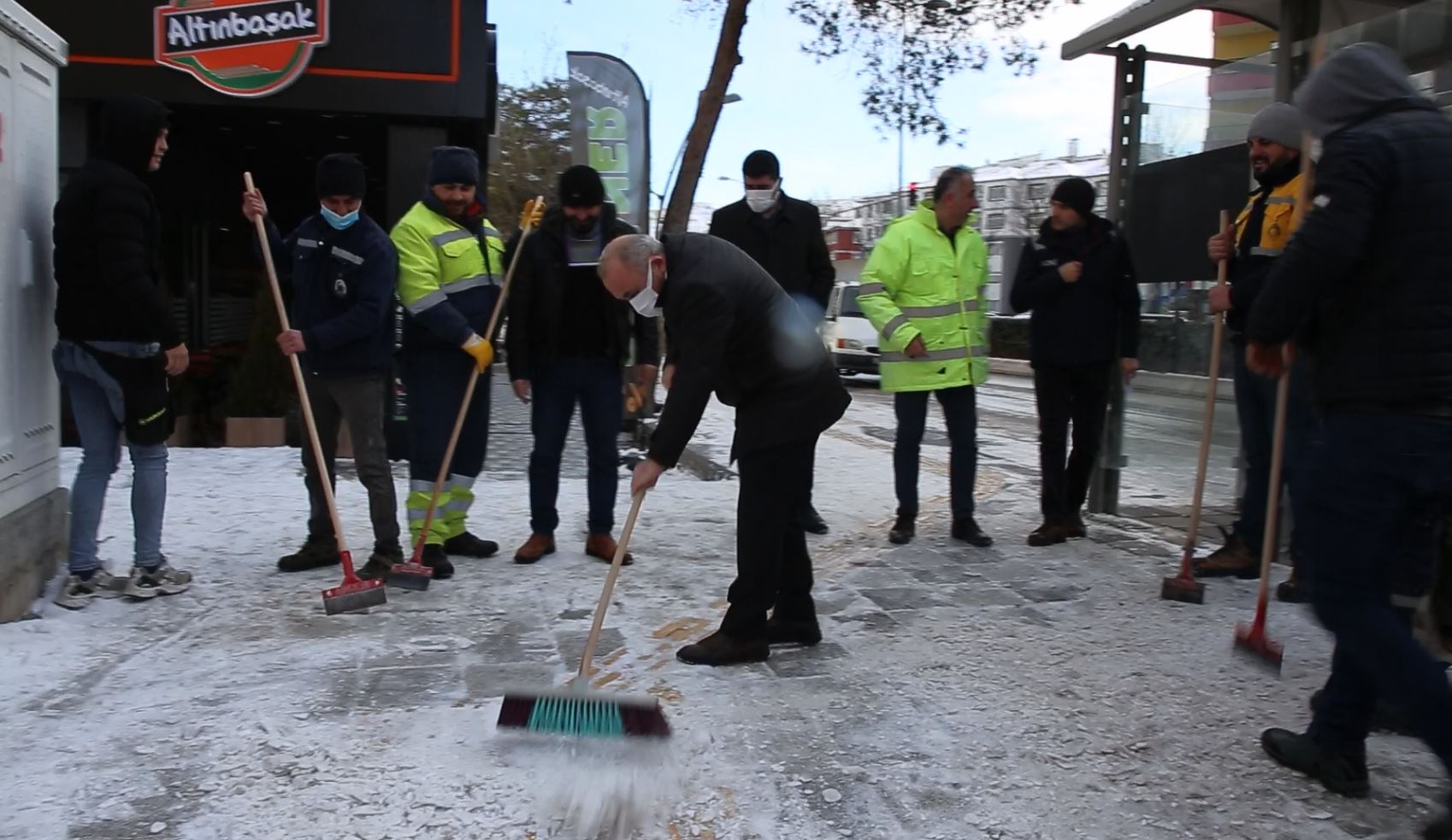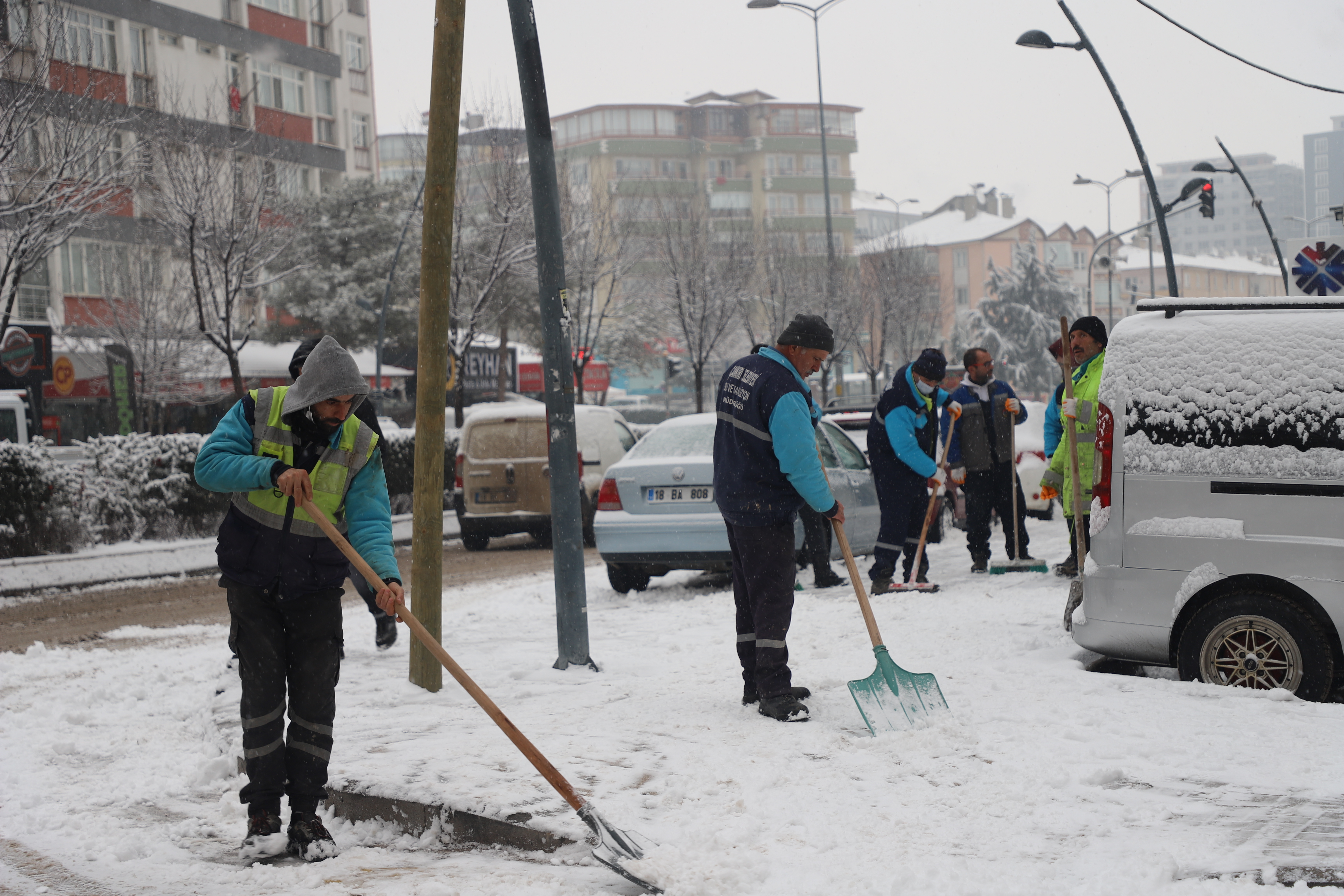 Kar küreme çalışmalarına katılan Belediye Başkanı İsmail Hakkı Esen, sahada 3 kar küreme aracı, 4 beko loder kepçe, 2 greyder, 200 personel ile tuzlama ve kaldırım temizleme çalışmalarının devam ettiğini belirterek araçlarına kış lastiği takmamış araç sürücülerinin trafiğe çıkmaması ve özellikle sokaklarda kar küreme araçlarının rahatça geçişine müsaade edecek şekilde araçlarını park etmeleri konusunda vatandaşları uyardı.