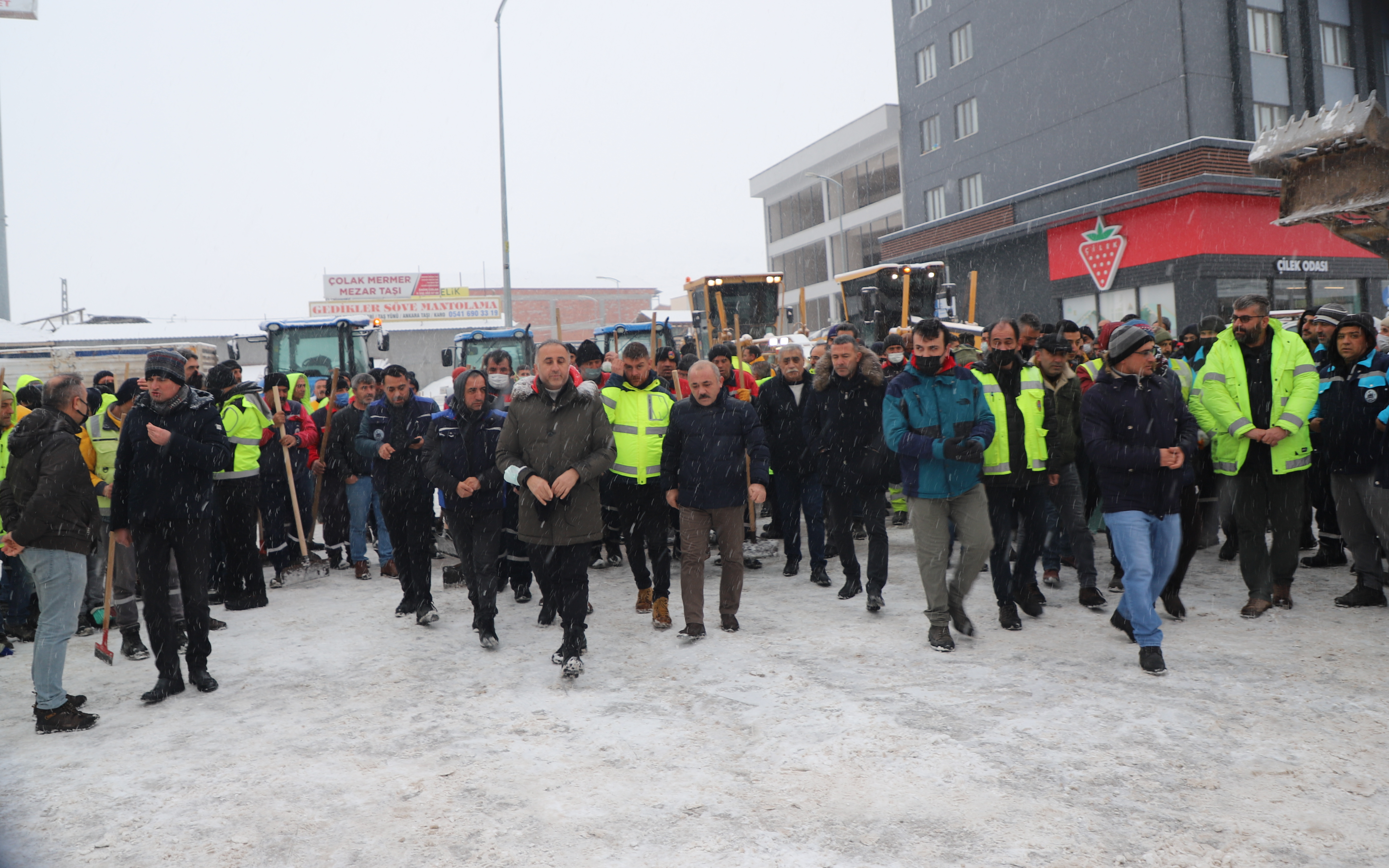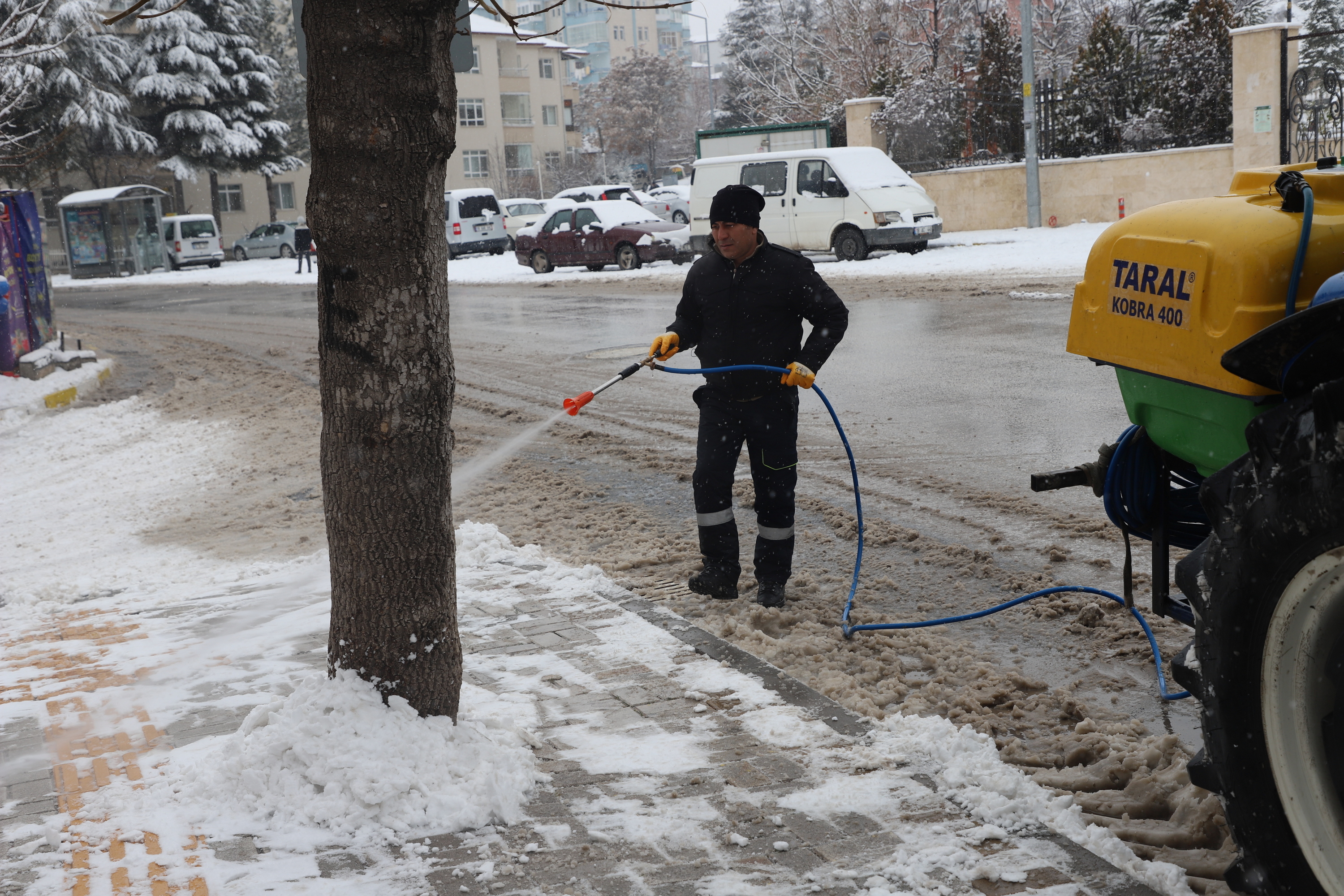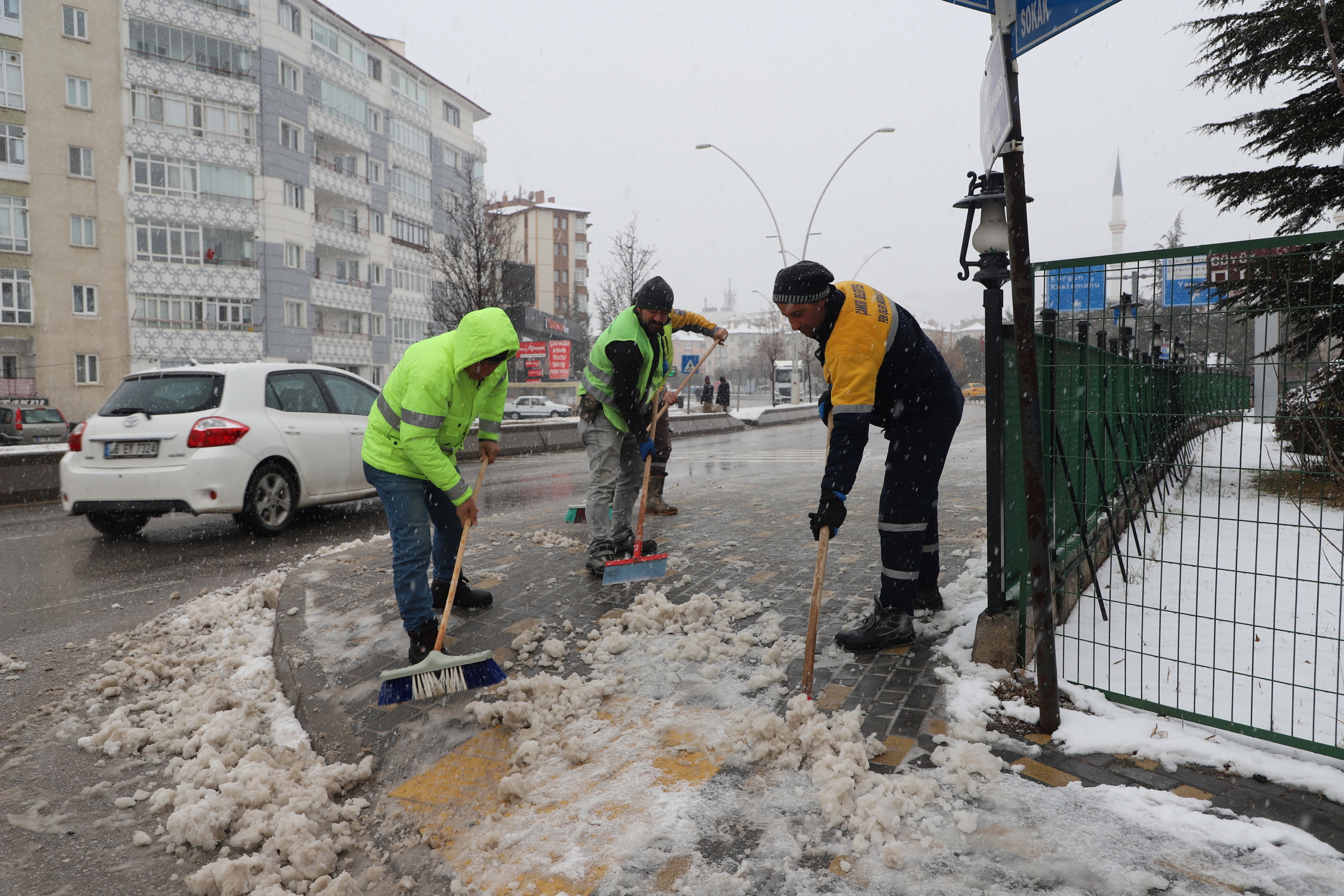 Kar küreme çalışmalarına katılan Belediye Başkanı İsmail Hakkı Esen, sahada 3 kar küreme aracı, 4 beko loder kepçe, 2 greyder, 200 personel ile tuzlama ve kaldırım temizleme çalışmalarının devam ettiğini belirterek araçlarına kış lastiği takmamış araç sürücülerinin trafiğe çıkmaması ve özellikle sokaklarda kar küreme araçlarının rahatça geçişine müsaade edecek şekilde araçlarını park etmeleri konusunda vatandaşları uyardı.