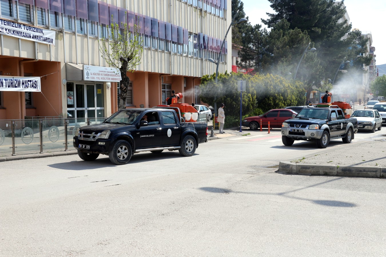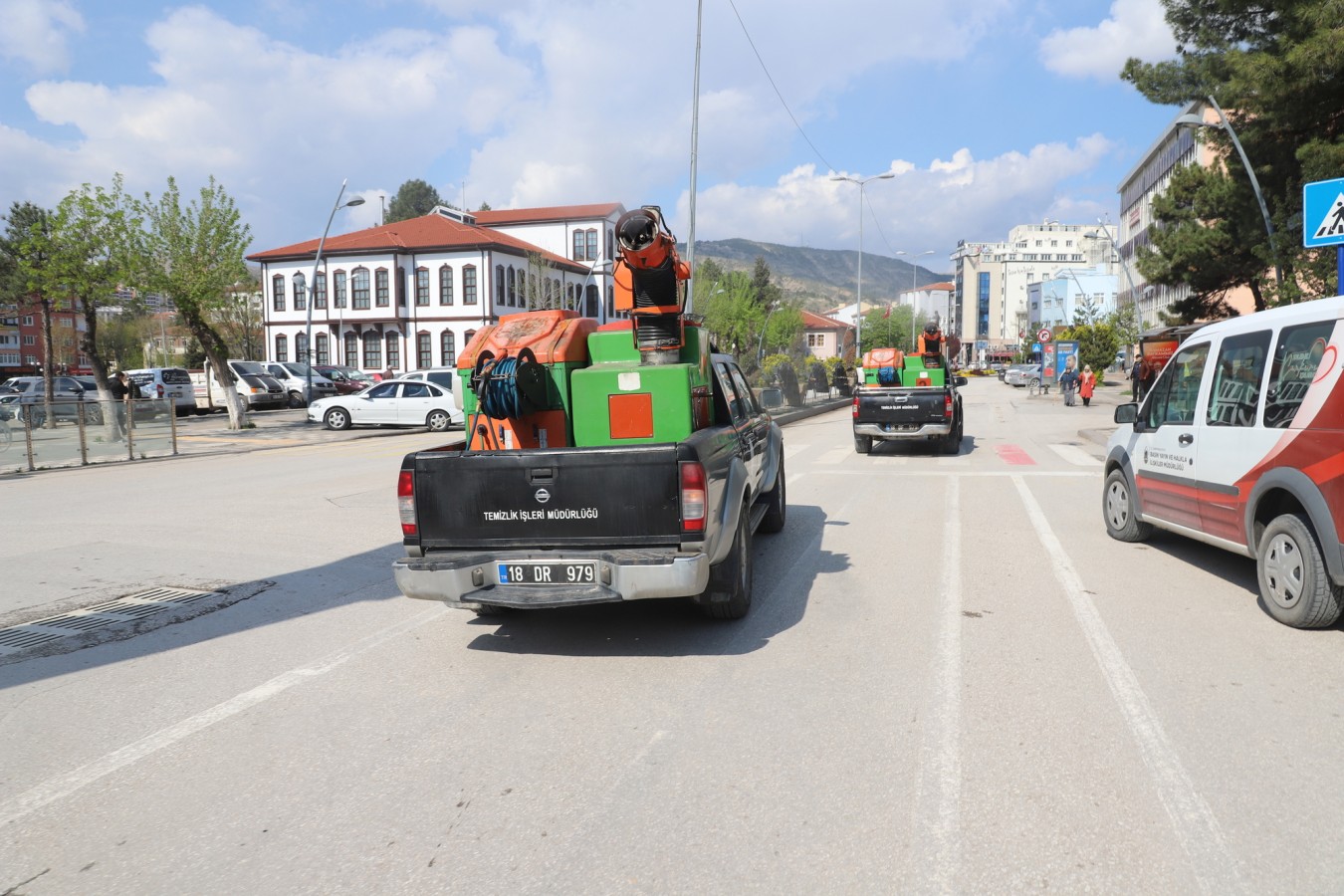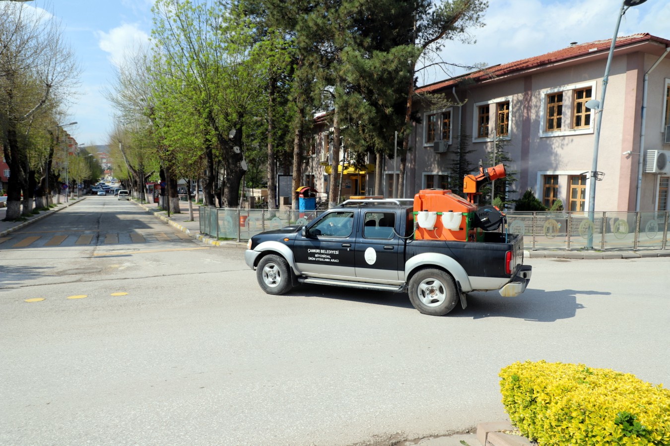 Cadde ve sokakları deterjanlı sular ile yıkayan belediye ekipleri, şehre bu kez gül suyu sıktı. İlaçlama araçlarına doldurulan gül suları, çevreye sıkılarak Çankırı’yı gül kokuttu. Uygulama, vatandaşları da memnun etti.