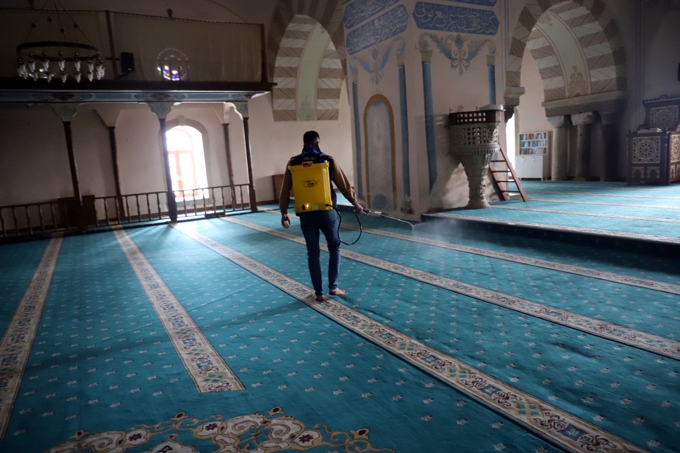 Cadde ve sokakların ardından ekipler, sırt pompaları ile camilere girdi. Dezenfekte edilen camilerin iç mekânlarına gül suyu sıkıldı. Şehir ile birlikte ibadethaneler de bayrama hazırlandı. Çalışmaların şehir merkezinde bulunan 55 camide yatsı namazından sabah namazına kadar devam edeceği bildirildi.