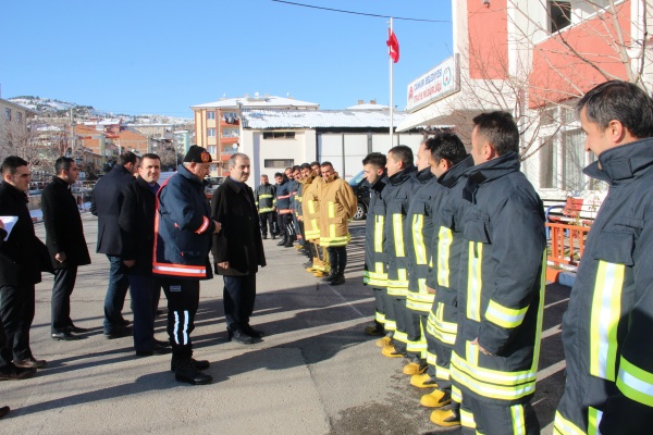 İtfaiye Müdürlüğü bahçesinde yangına yaklaşma elbiseleri ile hazır bekleyen itfaiye erlerini tek tek selamlayan Belediye Başkanı İrfan Dinç, yeni kıyafetleri inceledi.