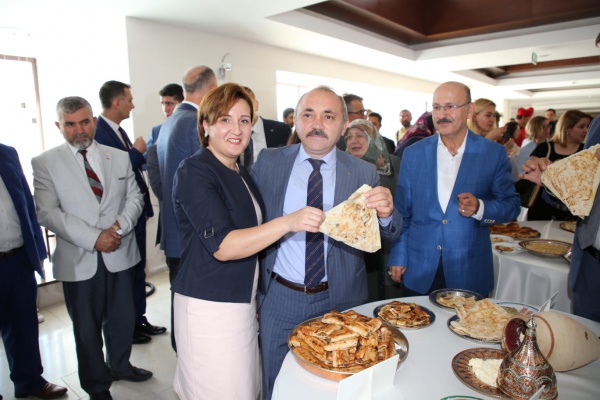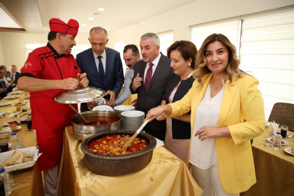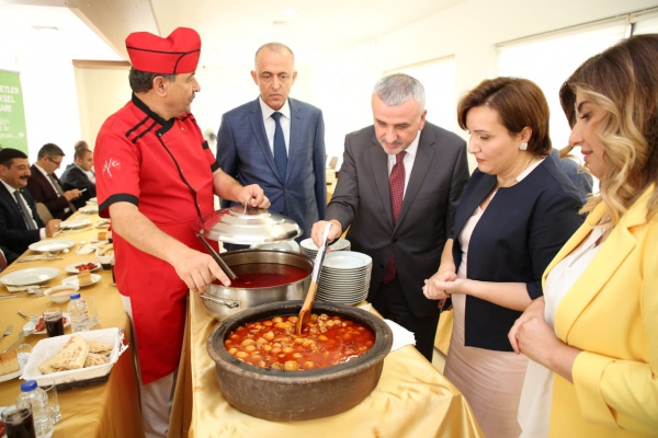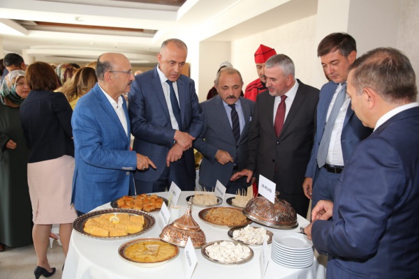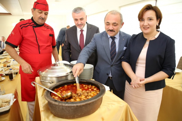 Astarlızade Sabiha Anne Kadın Eğitim Kültür Merkezinde düzenlenen Çankırı Sarımsaklı Et Coğrafi İşaret Tescil Belgesi Takdim Töreni’nin sonunda Çankırı’nın tescillenen ve tescil için başvurusu devam eden ürünler ile yöresel yemeklerinden örnekler sergilenerek katılımcılara ikram edildi.