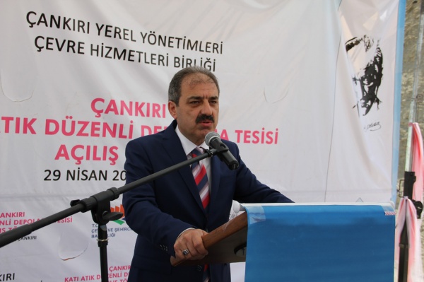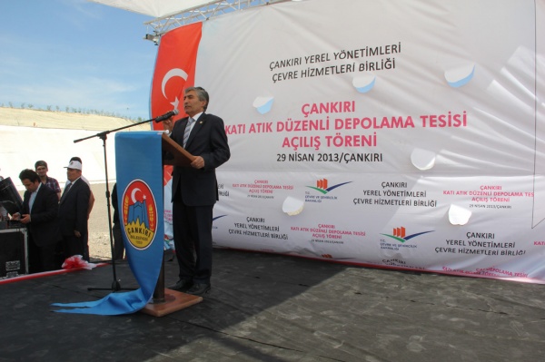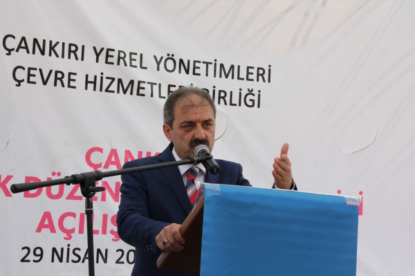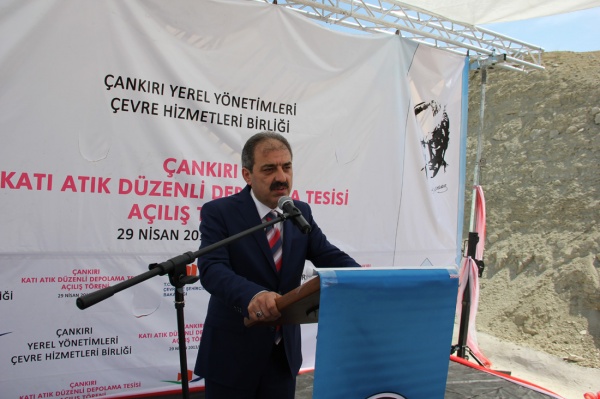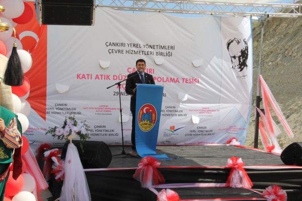 Çankırı Yerel Yönetimleri Çevre Hizmetleri Birliği Başkanı da olarak kısa bir konuşma yapan Belediye Başkanı İrfan Dinç, birliği yerel yönetimlerin ortak sorunu olan çöp sahaları sorununun çözülmesi amacıyla 2006 yılında Bakanlar Kurulu kararıyla kurduklarını belirterek birliğin altı ay gibi kısa bir sürede tamamladığı Katı Atık Depolama Tesisi’nde ilçelerden ve köylerden toplanan çöplerin muhafaza edileceğini kaydetti.