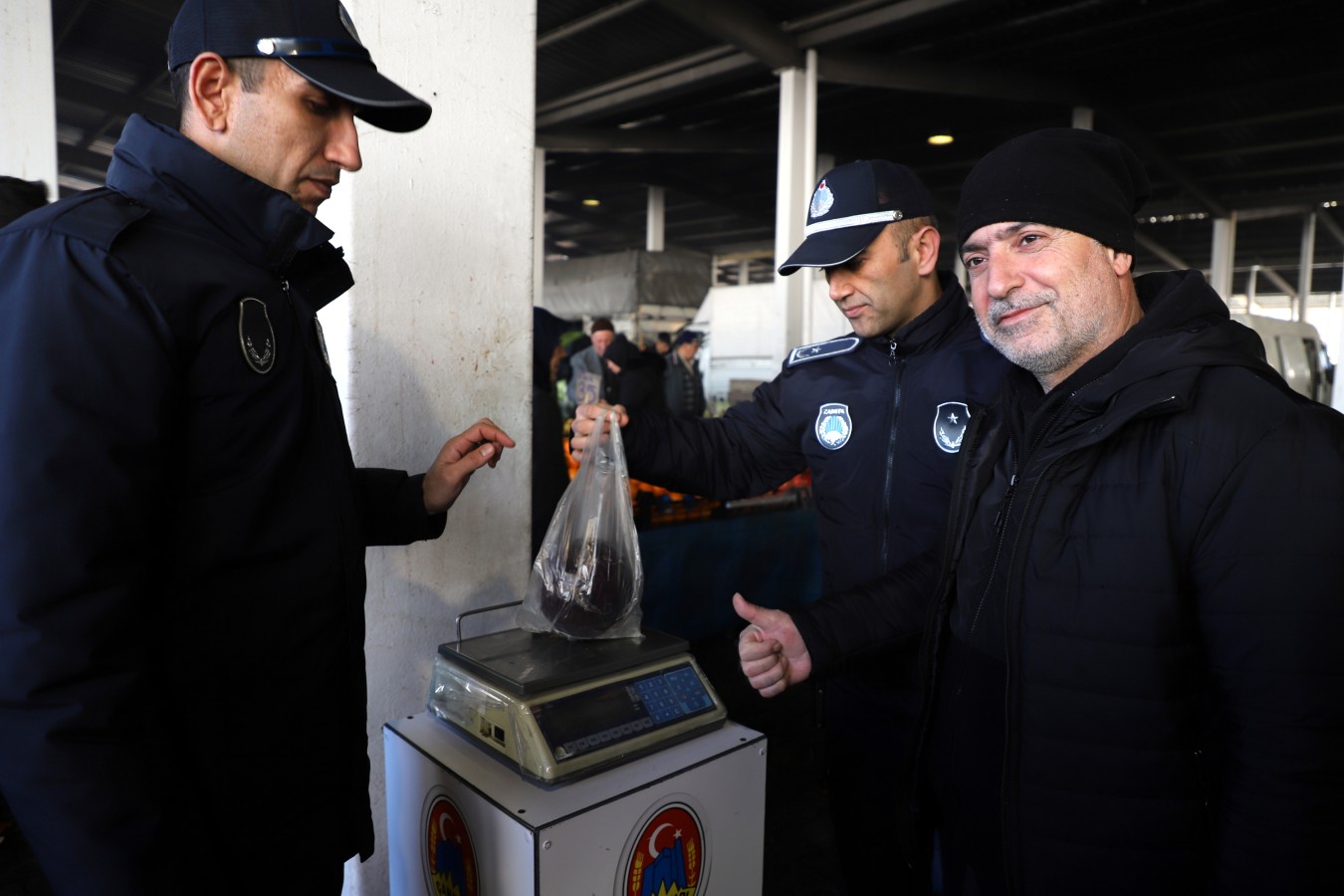 Denetimlerde ayrıca, satışa sunulan ürünlerin etiketlerinin bulunup bulunmadığı incelenirken pazar tezgâhlarının belirlenen çizgileri aşarak geçiş yollarını ihlal etmemesine, pazar esnafının çığırtkanlık yapmamasına da dikkat edildi.