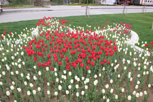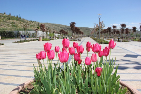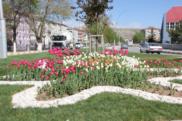 Ahmet Yesevi Camii Meydanı, Recep Tayyip Erdoğan Parkı girişi, Astarlızade Hilmi Efendi mezarlık çevresi ile İstasyon Kavşağı’na dikilen laleler, şehre renk kattı.