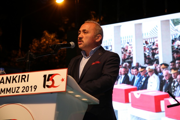Çankırı Milletvekili Salim Çivitçioğlu, 15 Temmuz gecesi Türkiye’yi tarih dışına itme projesinin şehadete koşanlarla hüsrana uğratıldığını ifade ederek Çankırılı şehit ve gazilerin isimlerini okudu.