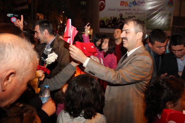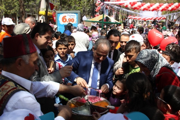 Büyük Önder Atatürk’ün bir müessesenin açıldığı günü çocuklarımıza bayram olarak hediye etmesinin büyük önem taşıdığını, bu yüzden yavrularımızın bayram maneviyatına ve ruhuna uygun olarak yetişmesinin önemini vurgulayan Dinç “Ülkelerin gelişmişlikleri ve nüfuzları, yetiştirdikleri bireylerin donanımları ile alakalı. Benim ülkem adına hiçbir endişem yok, çocuklarımız demokrasi ruhuna, dünya insanlığına faydalı olma adına güzel yetişiyorlar. ‘Güneşe göç var da kalan biz miyiz?’ demiş merhum şair. Dünyada yavrular bu hedefe doğru koşarken Çankırı da geri duramazdı. Biz de çocuklarımız iyi yetişsin diye ciddi faaliyetler yapıyoruz. Bunlardan bir tanesi de 23 Nisan etkinliklerimiz. Resmi programı yaptıktan sonra Karatekin Parkı ile Valilik arasındaki sokağı kapattık. Orası gerçekten iğne atsanız yere düşmeyecek şekilde, hem yavrularımızla hem de aileleri ile doldu. Kimseyi zorla getirmedik, herkes kendi isteğiyle geldi. İşte bayram bu! Bayram böyle kutlanır. Hiçbir şeyi kalıp içine sokmak doğru değil. Bayram, çocukların bayramı. Dolayısı ile Çankırı olarak bu bayramlarımızı güzel kutladığımız kanaatindeyim. Biz hayatı bayram kılmalıyız.” diye konuştu.
