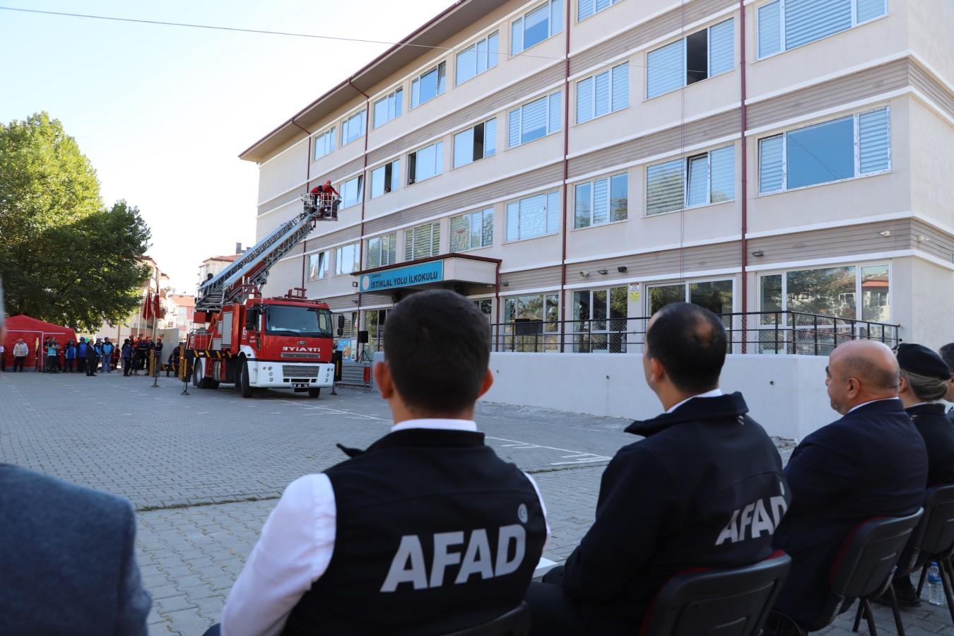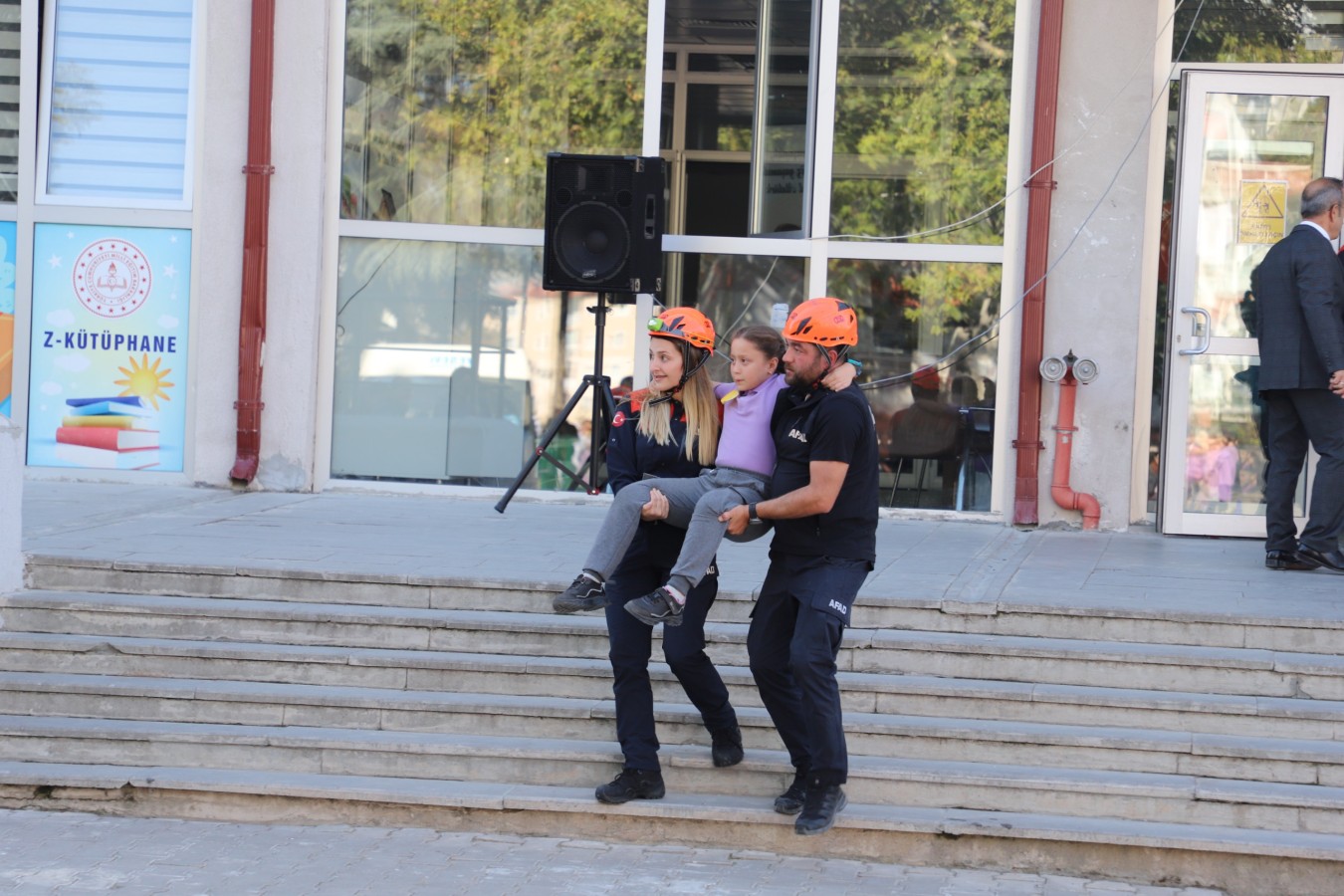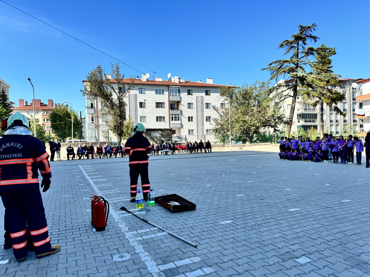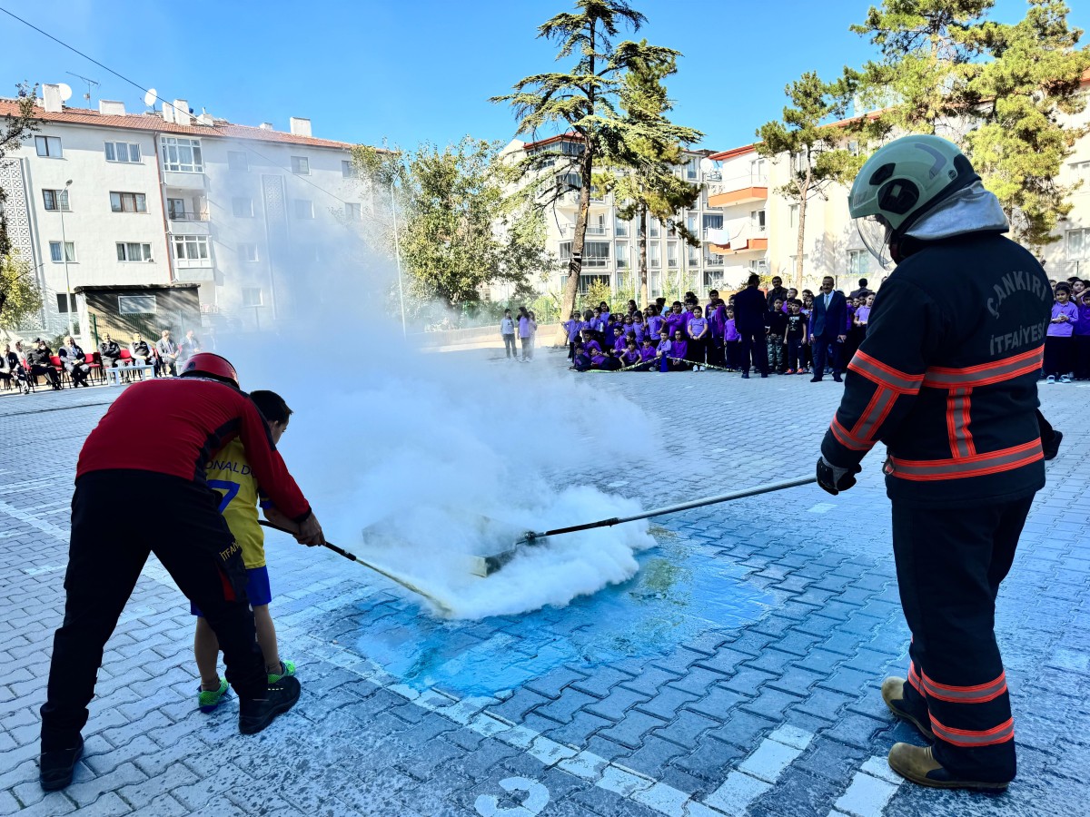 Sirenler bu kez Çankırı İstiklal Yolu İlkokulu bahçesinde çaldı. Tatbikata katılan yüzlerce öğrenci, afet esnasında nasıl davranacaklarını ve yardıma gelen ekiplerin neler yapacağını uygulamalı olarak tatbik etti. Çankırı Belediyesi İtfaiye Müdürlüğü ekiplerinin de araç, gereç ve donanımları ile hazır beklediği tatbikatta yaralı çıkarma, merdivenli araçla yüksekten yaralı indirme, yangın söndürme ve tahliye etme alanlarında uygulama ve kurtarma çalışmaları yapıldı.