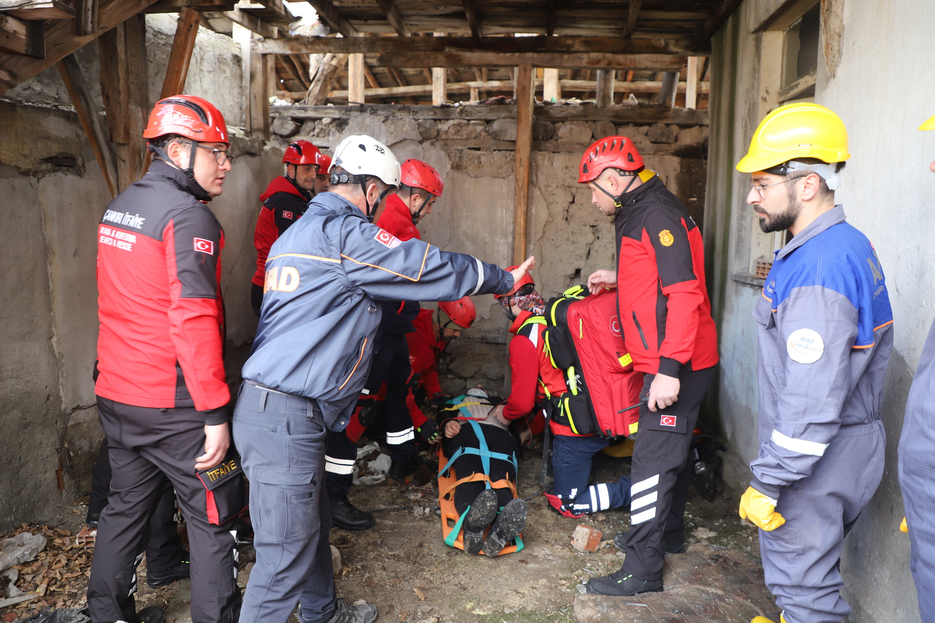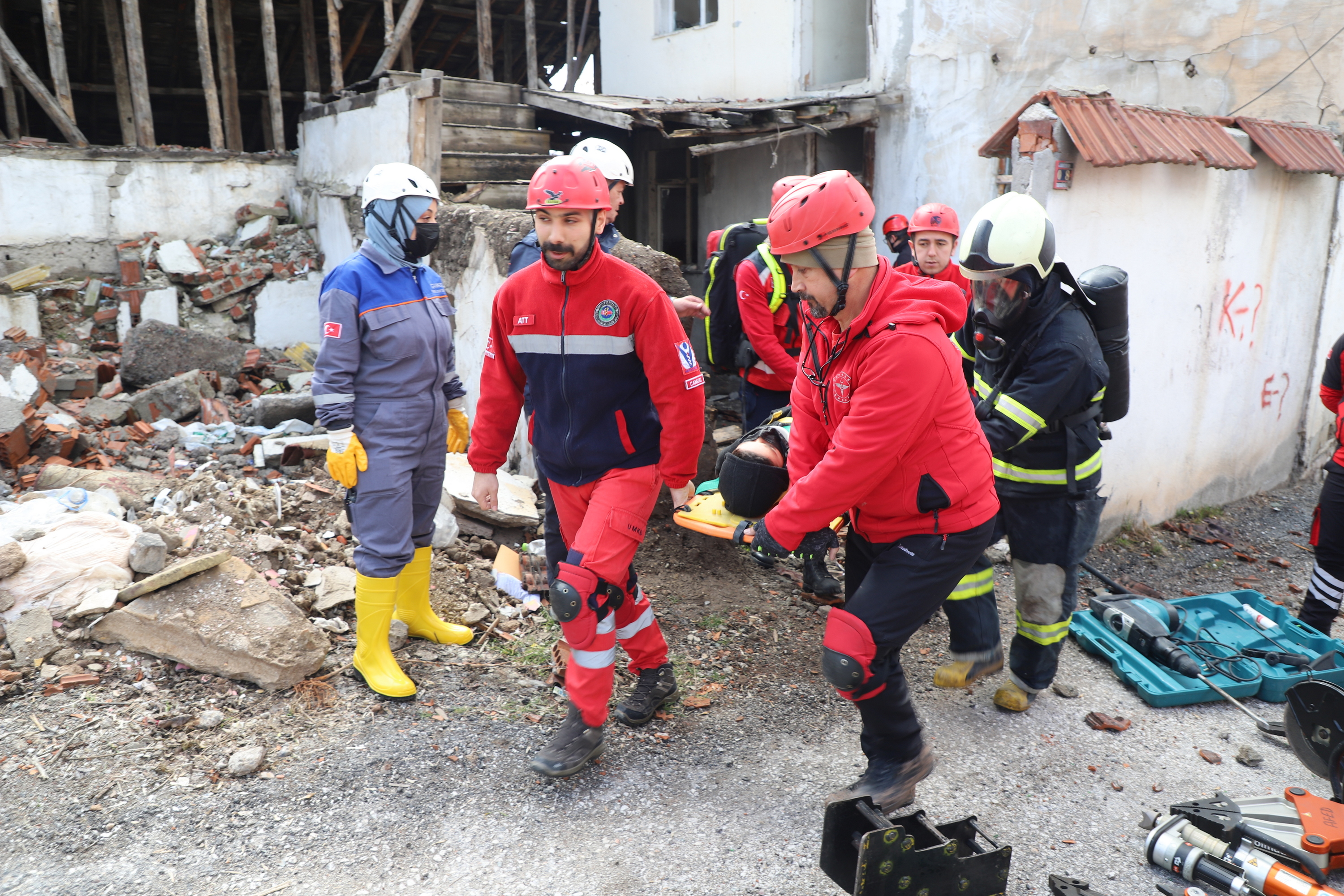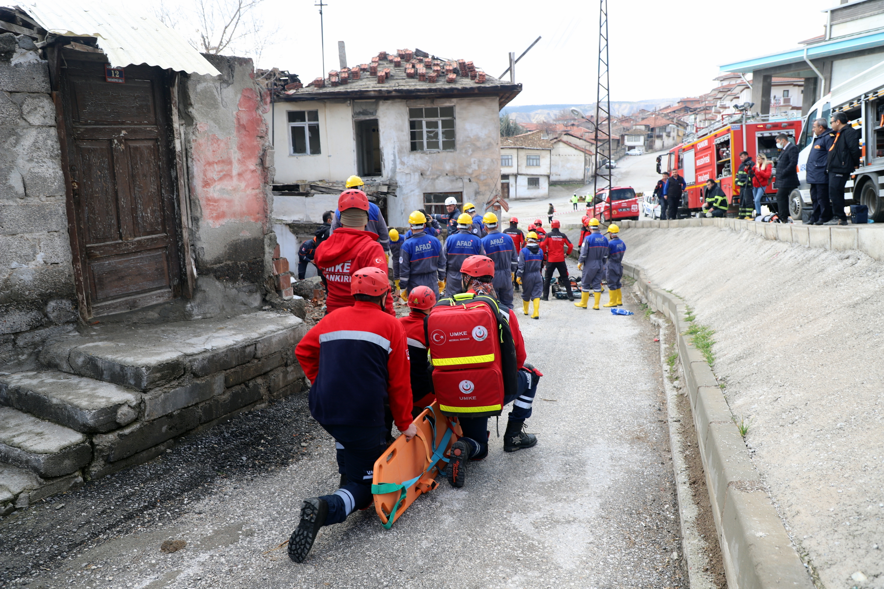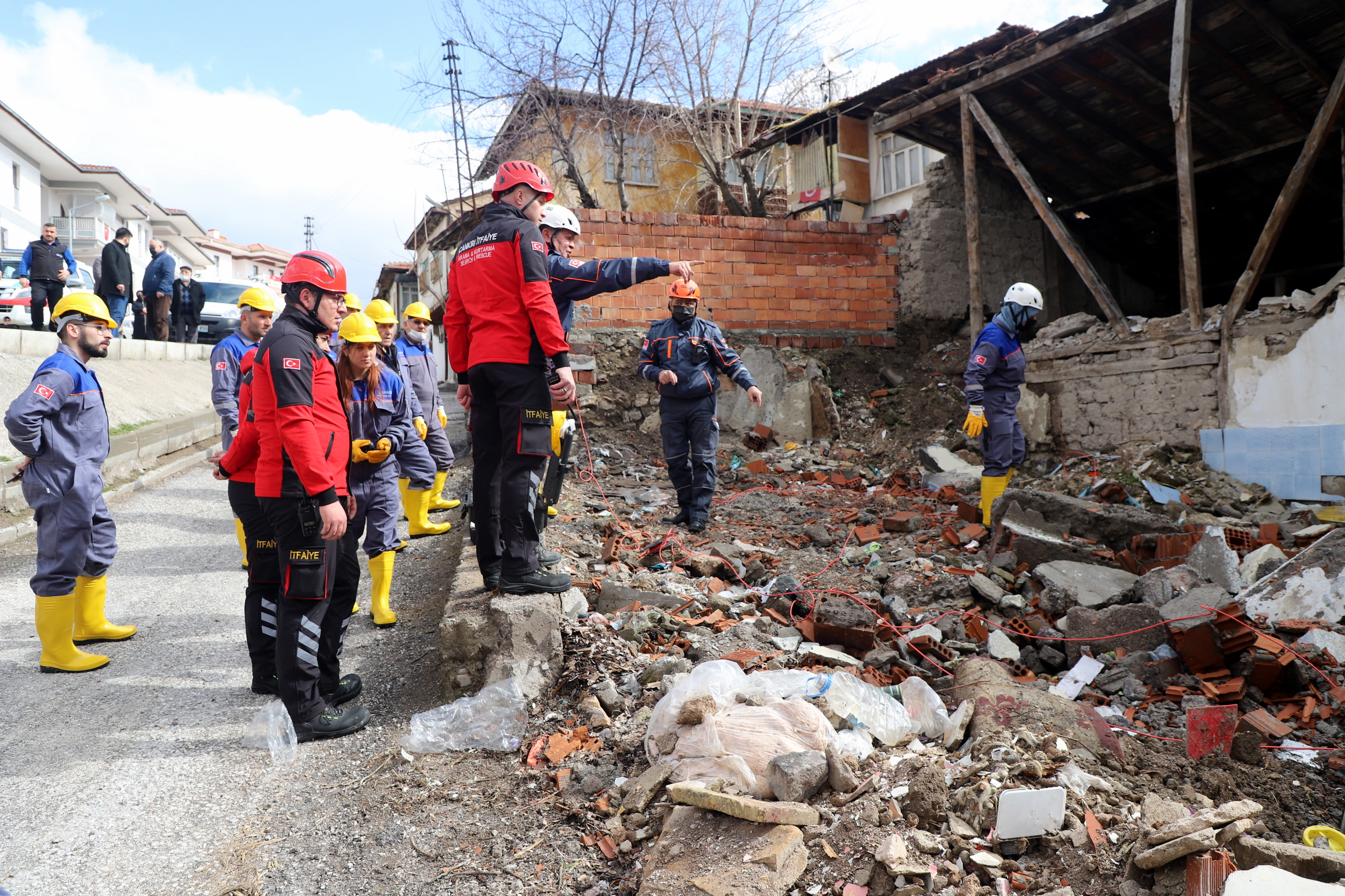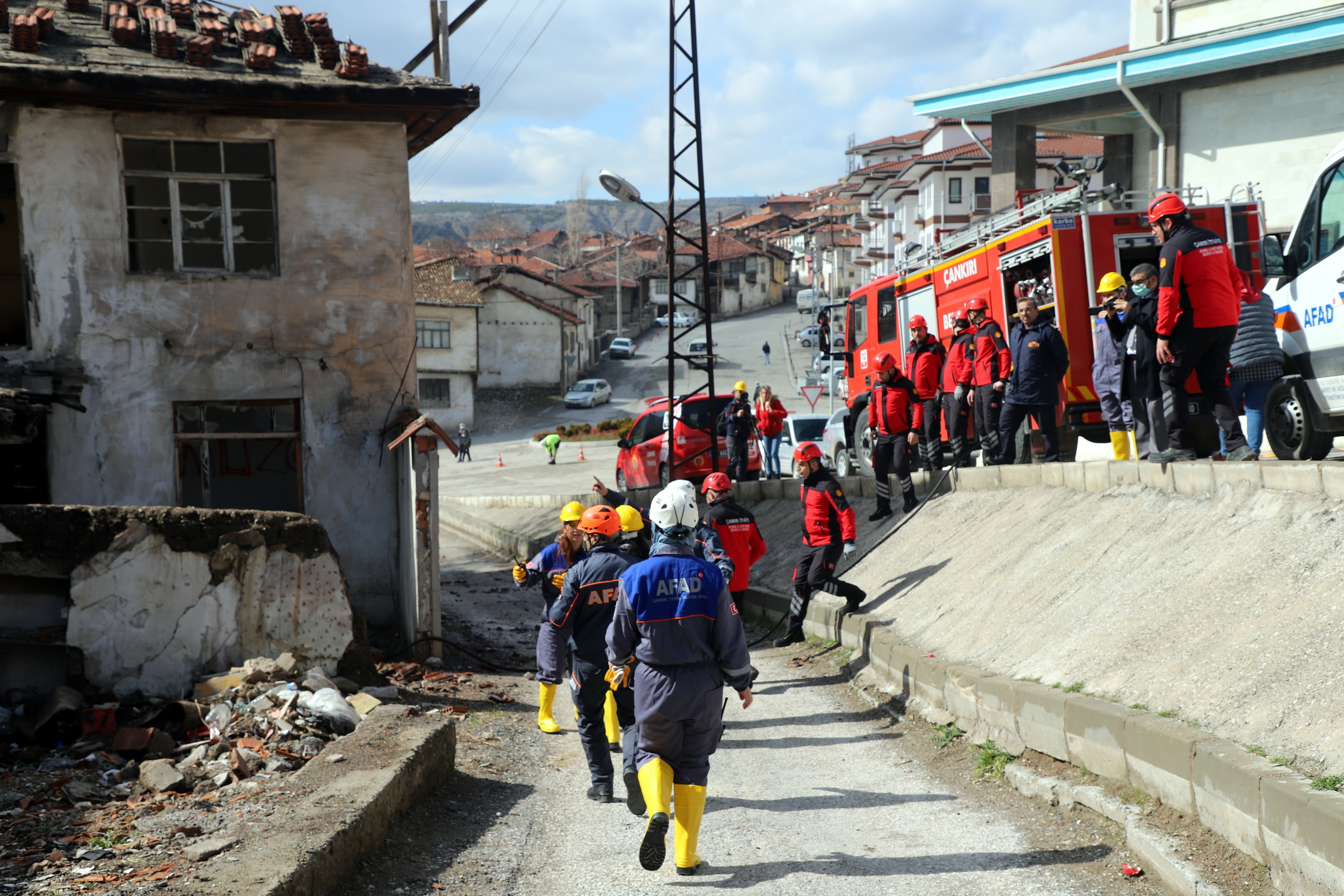 Çankırı’da ekipler alarma geçti. Senaryo gereği Çankırı Eldivan ilçesi Çiftlikköy yakınlarında 7.2 büyüklüğünde meydana gelen depremde merkezde yıkılan binada arama kurtarma çalışmaları başlatıldı. 112 Acil Çağrı Merkezine gelen ihbar üzerine acilen enkaz bölgesine sevk edilen İl Afet ve Acil Durum Müdürlüğü, Çankırı Belediyesi İtfaiye Müdürlüğü, Ulusal Medikal Kurtarma Ekipleri (UMKE) ve İl Emniyet Müdürlüğü ekipleri ortaklaşa arama ve kurtarma çalışmalarına başladı. Tatbikata arama kurtarma köpeği de katıldı. Deprem sonrası göçük altında kalan iki vatandaşın yerleri tespit edilerek yaralı olarak kurtarıldı. Tatbikat, ekiplerin ortak çalışması ile başarılı bir şekilde tamamlandı.