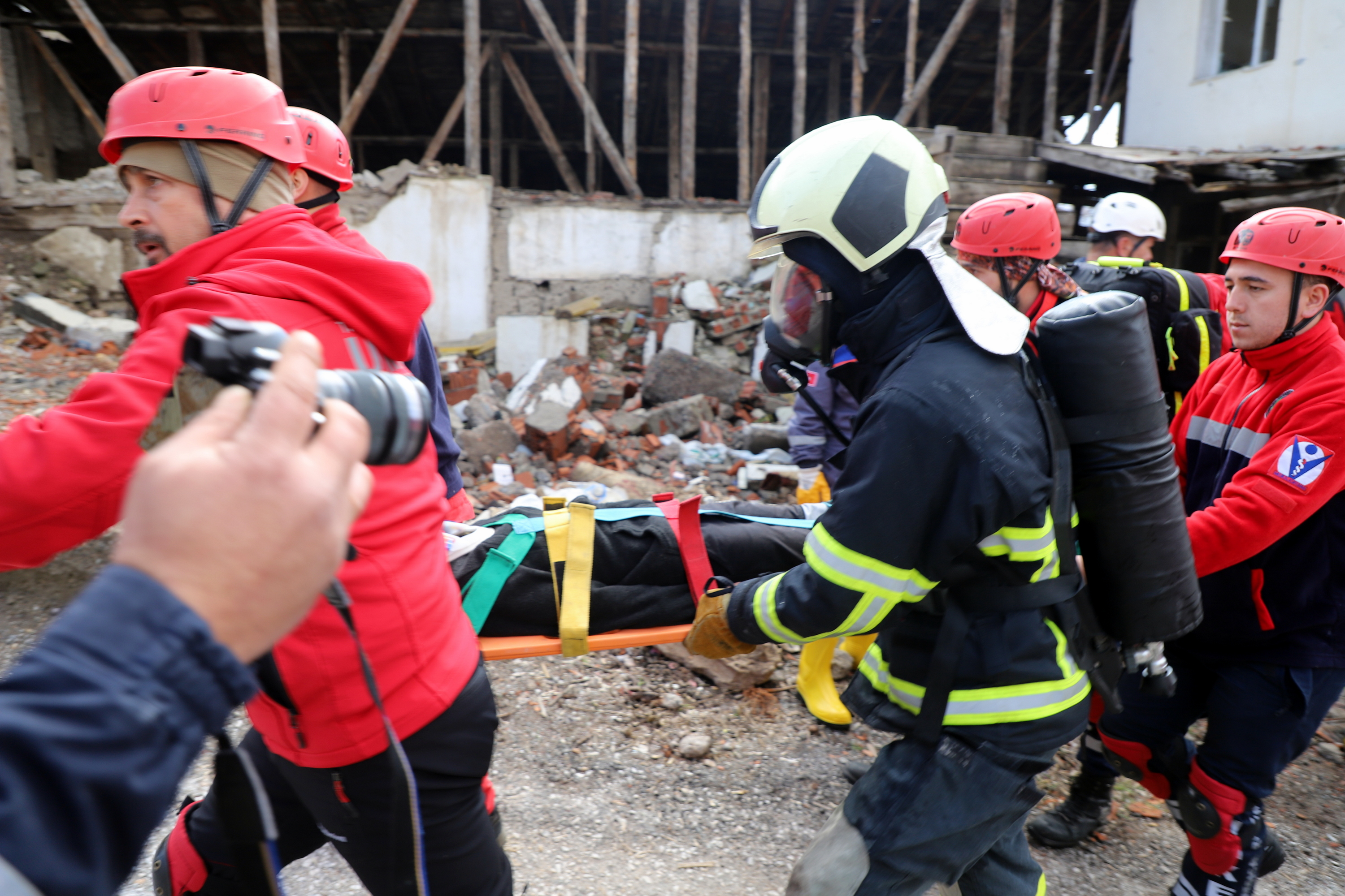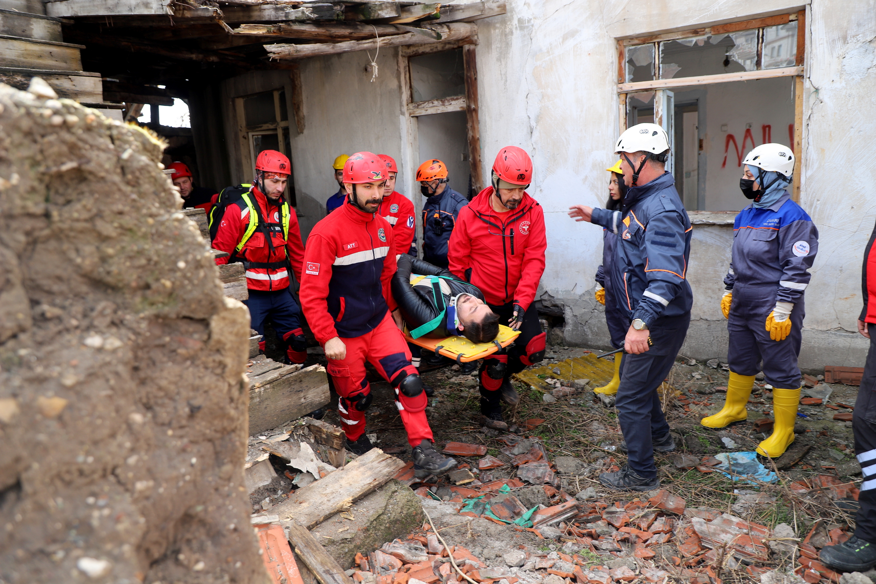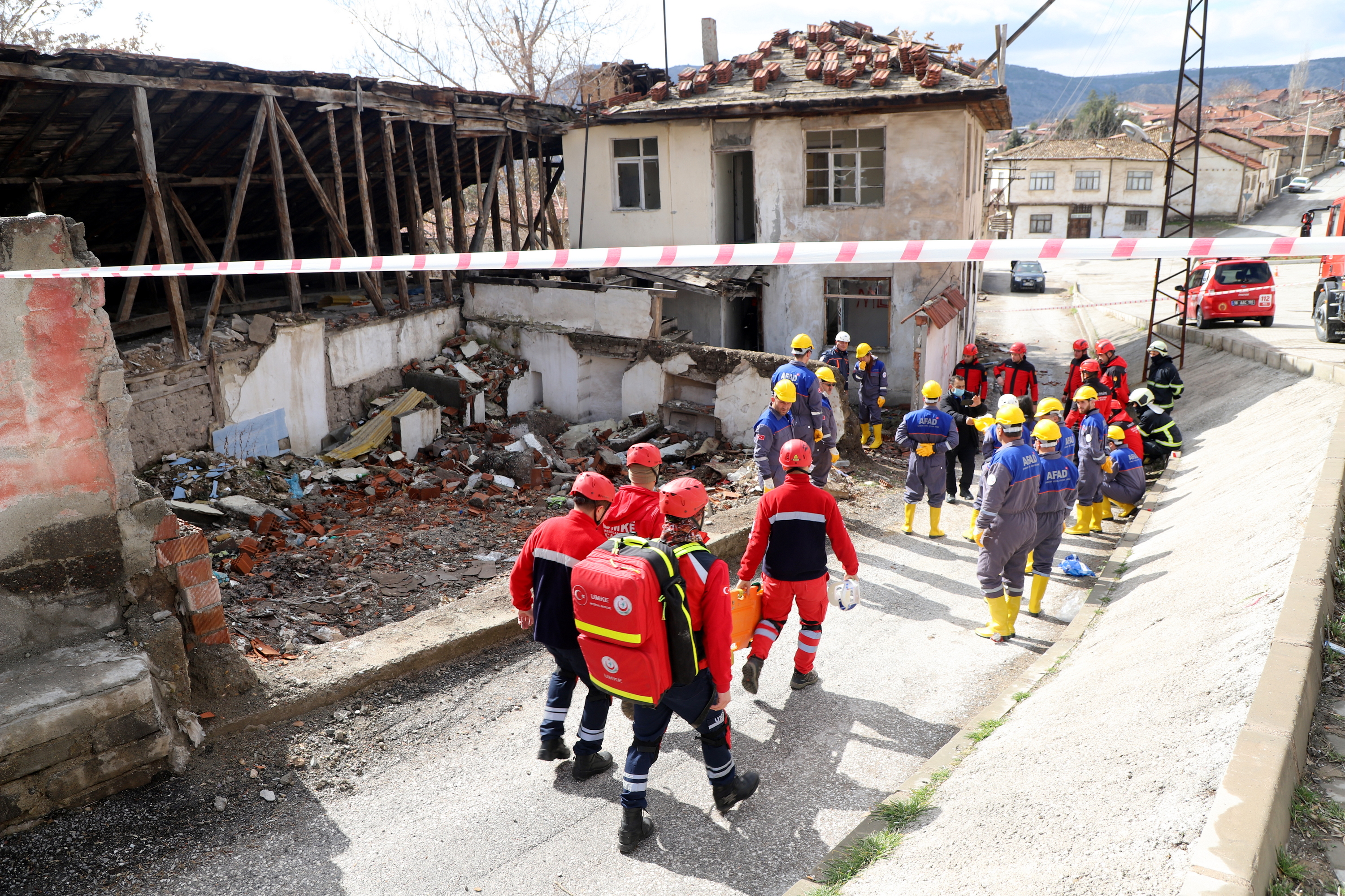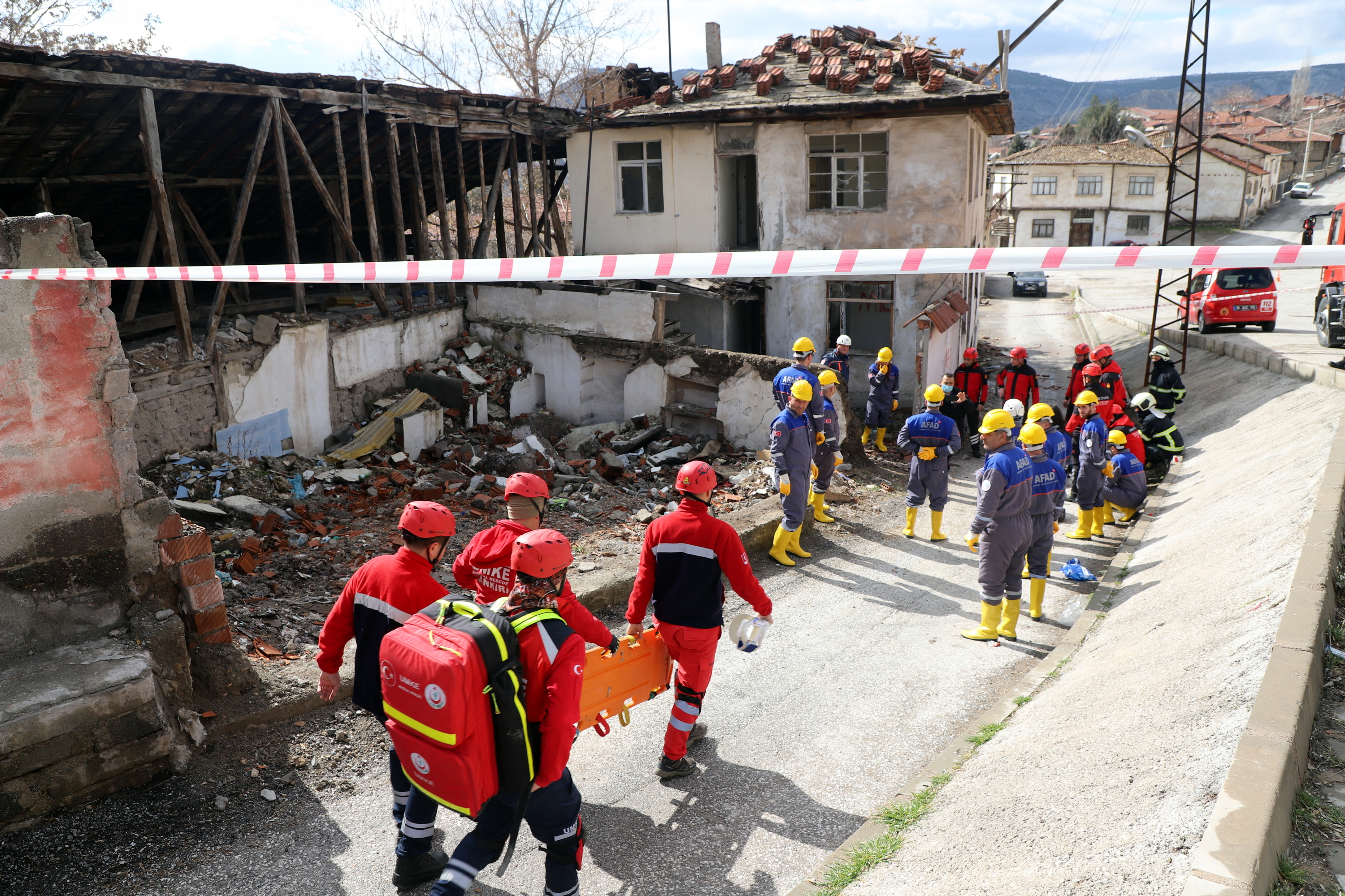 Çankırı’da ekipler alarma geçti. Senaryo gereği Çankırı Eldivan ilçesi Çiftlikköy yakınlarında 7.2 büyüklüğünde meydana gelen depremde merkezde yıkılan binada arama kurtarma çalışmaları başlatıldı. 112 Acil Çağrı Merkezine gelen ihbar üzerine acilen enkaz bölgesine sevk edilen İl Afet ve Acil Durum Müdürlüğü, Çankırı Belediyesi İtfaiye Müdürlüğü, Ulusal Medikal Kurtarma Ekipleri (UMKE) ve İl Emniyet Müdürlüğü ekipleri ortaklaşa arama ve kurtarma çalışmalarına başladı. Tatbikata arama kurtarma köpeği de katıldı. Deprem sonrası göçük altında kalan iki vatandaşın yerleri tespit edilerek yaralı olarak kurtarıldı. Tatbikat, ekiplerin ortak çalışması ile başarılı bir şekilde tamamlandı.