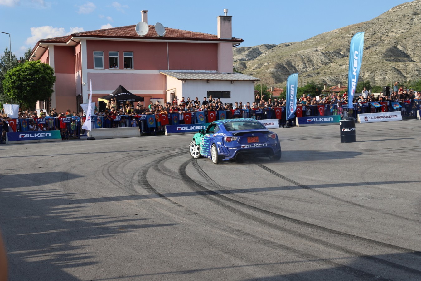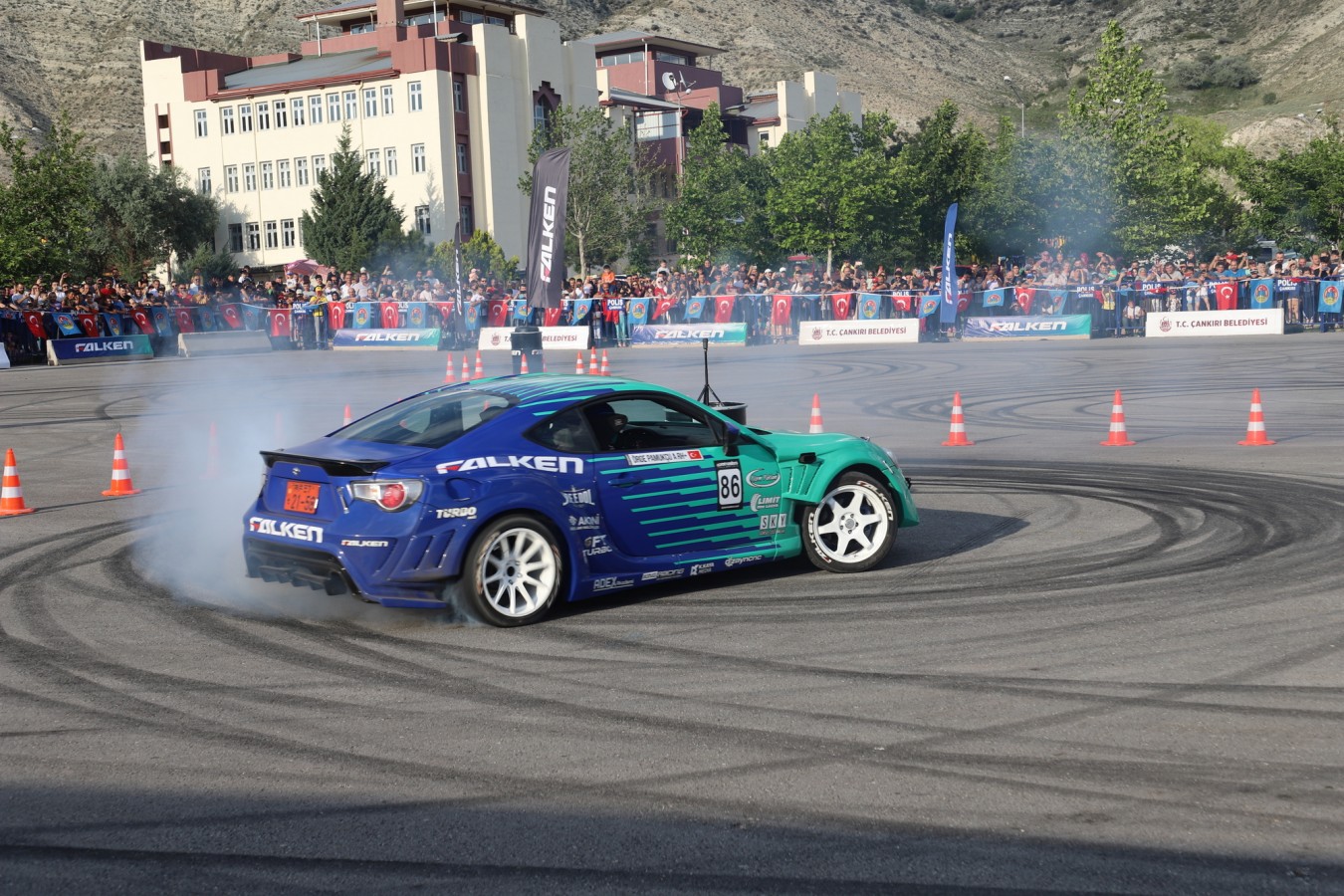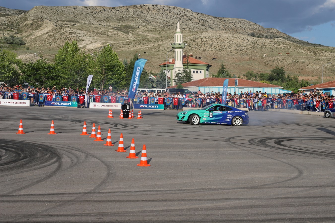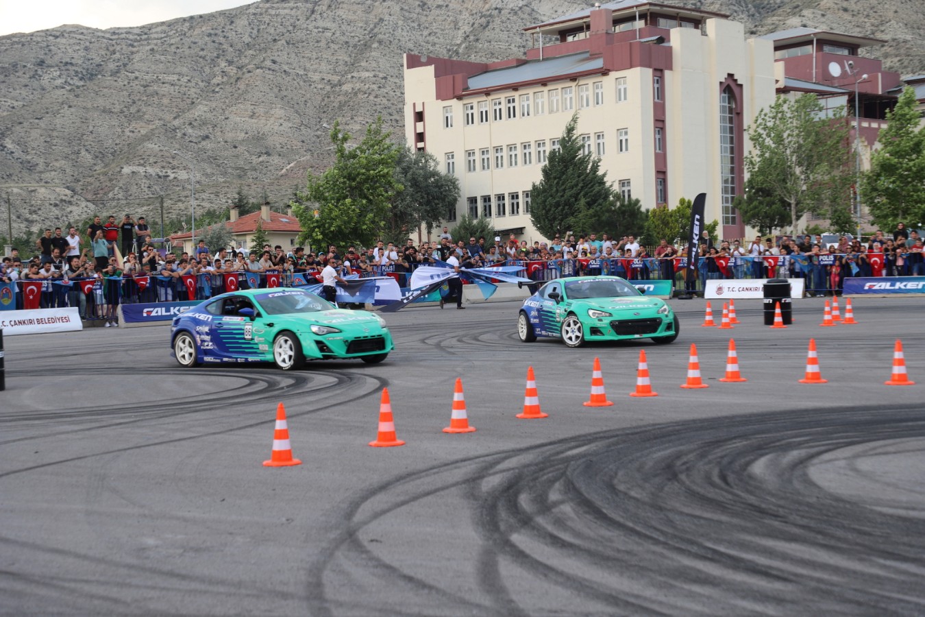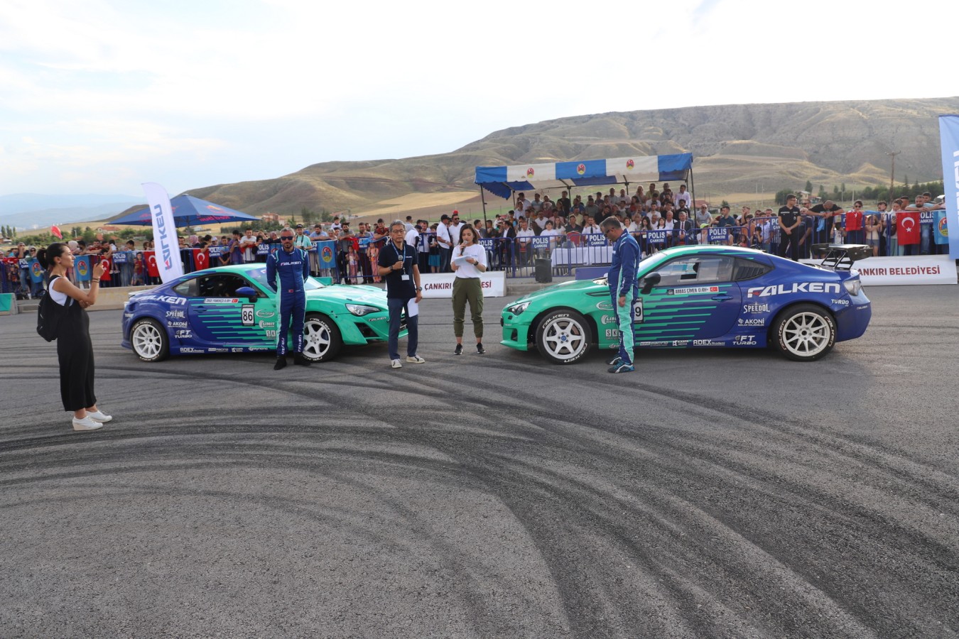 Türkiye’nin en aktif drift takımı ile piste ilk olarak Subaru BRZ 29 numaralı araçta Drift Pilotu Abbas Çimen beraberinde Çankırı Valisi Abdullah Ayaz, Toyota GT 86 numaralı araçta Drift Pilotu Örge Pamukçu beraberinde ise Çankırı Belediye Başkanı İsmail Hakkı Esen çıktı. Drift heyecanına ortak olan Ayaz ve Esen, ünlü pilotlar ile birlikte drift attıktan sonra halkı selamladı. Varillere sıfır noktasında dönüş yaparak sekiz çizen drift pilotları, araçlarının lastiklerini Çankırılılar için yaktı. Tozu dumana katan gösteri, vatandaşlardan büyük alkış aldı. Adeta asfaltı ağlatan pilotlar, gösterilerinin sonunda halkı selamlayarak spor tutkunu vatandaşlar ile birlikte objektiflere poz verdi.