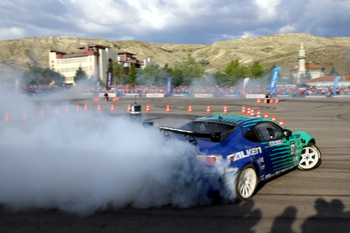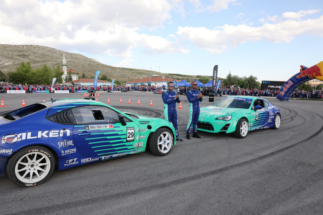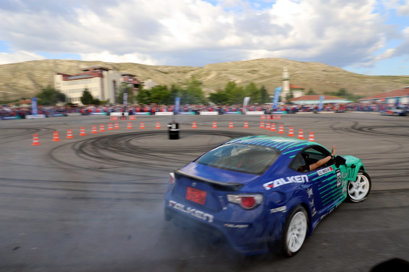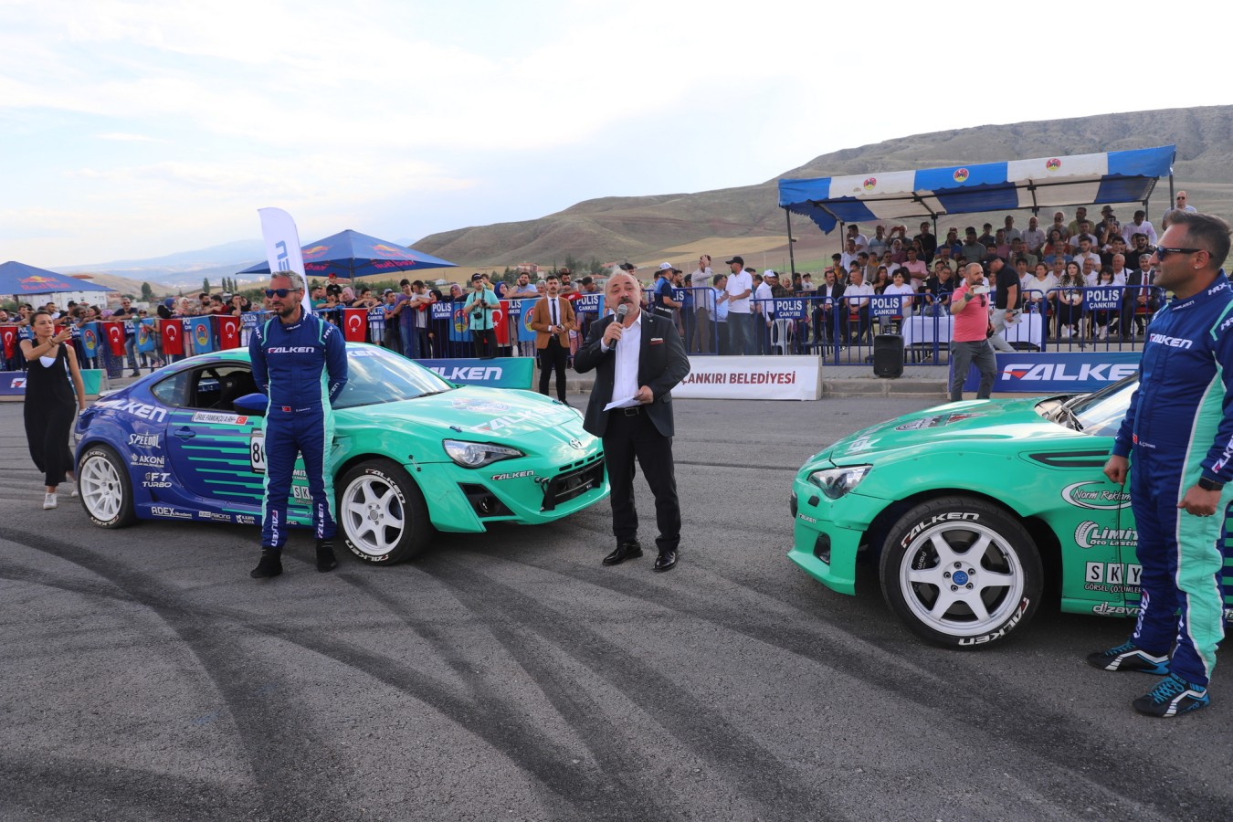 Türkiye’nin en aktif drift takımı ile piste ilk olarak Subaru BRZ 29 numaralı araçta Drift Pilotu Abbas Çimen beraberinde Çankırı Valisi Abdullah Ayaz, Toyota GT 86 numaralı araçta Drift Pilotu Örge Pamukçu beraberinde ise Çankırı Belediye Başkanı İsmail Hakkı Esen çıktı. Drift heyecanına ortak olan Ayaz ve Esen, ünlü pilotlar ile birlikte drift attıktan sonra halkı selamladı. Varillere sıfır noktasında dönüş yaparak sekiz çizen drift pilotları, araçlarının lastiklerini Çankırılılar için yaktı. Tozu dumana katan gösteri, vatandaşlardan büyük alkış aldı. Adeta asfaltı ağlatan pilotlar, gösterilerinin sonunda halkı selamlayarak spor tutkunu vatandaşlar ile birlikte objektiflere poz verdi.