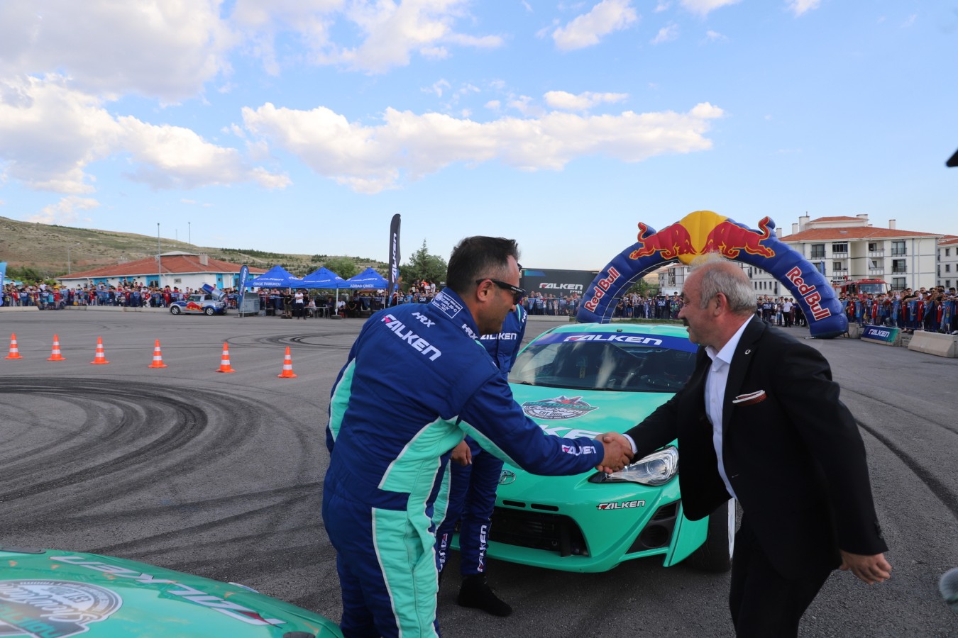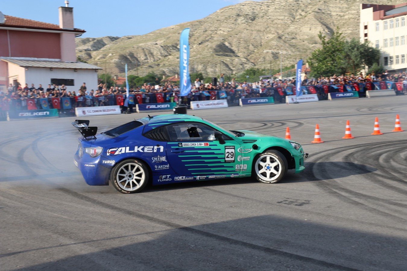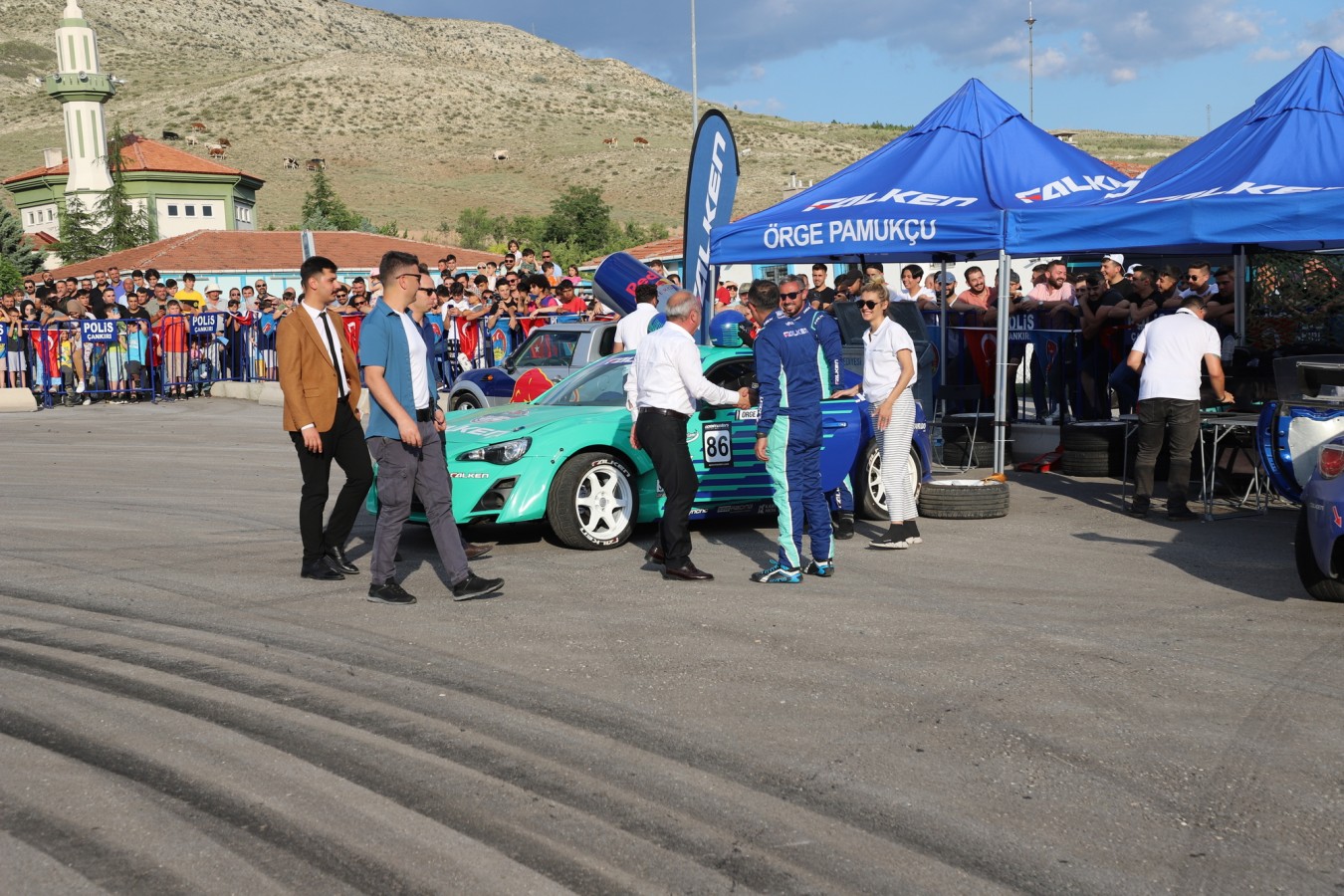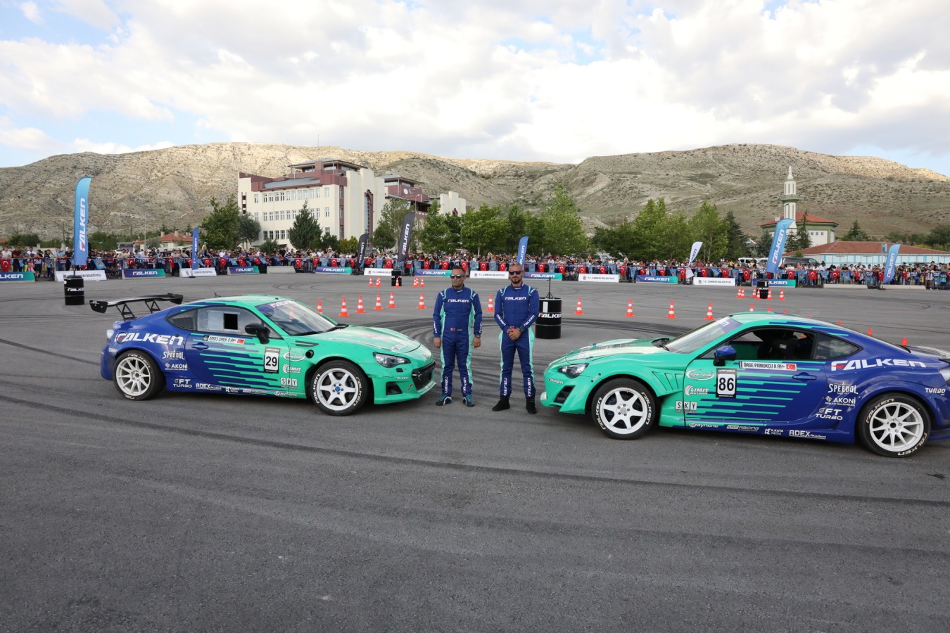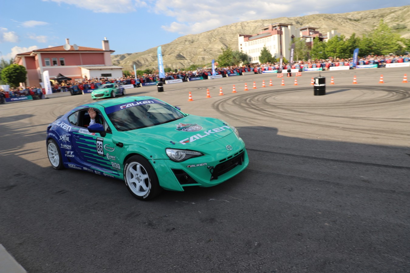 Türkiye’nin en aktif drift takımı ile piste ilk olarak Subaru BRZ 29 numaralı araçta Drift Pilotu Abbas Çimen beraberinde Çankırı Valisi Abdullah Ayaz, Toyota GT 86 numaralı araçta Drift Pilotu Örge Pamukçu beraberinde ise Çankırı Belediye Başkanı İsmail Hakkı Esen çıktı. Drift heyecanına ortak olan Ayaz ve Esen, ünlü pilotlar ile birlikte drift attıktan sonra halkı selamladı. Varillere sıfır noktasında dönüş yaparak sekiz çizen drift pilotları, araçlarının lastiklerini Çankırılılar için yaktı. Tozu dumana katan gösteri, vatandaşlardan büyük alkış aldı. Adeta asfaltı ağlatan pilotlar, gösterilerinin sonunda halkı selamlayarak spor tutkunu vatandaşlar ile birlikte objektiflere poz verdi.