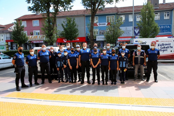 Çankırı’da Zabıta Haftası kutlamaları farklı etkinlikler ile devam ediyor. Kültür ve Sosyal İşler Müdürlüğüne bağlı Çocuk Meclisi üyeleri, zabıta kıyafetlerini giyerek Belediye Zabıta ekiplerinin özel gününü kutladı. Zabıta Müdürlüğünden başlayan ziyaret, esnaf denetimleri ile devam etti. Zabıta ekiplerinin görev ve sorumlulukları hakkında bilgi alan çocuk zabıtalar, öğrendikleri bilgiler doğrultusunda çarşı esnafını sembolik olarak denetledi. Etkinlik, çocuk zabıtaların isteklerini yerine getiren esnafların da yüzünü güldürdü. Birkaç saatliğine de olsa zabıta olmanın heyecanını yaşayan çocuklar, zabıta araçları ile sirenler eşliğinde şehir turu yaptı. Etkinlik sonunda çocuklara Türk bayrağı hediye edildi.