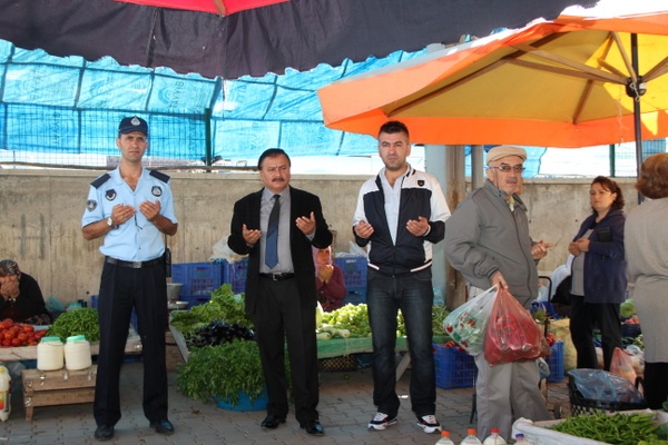 Sabah erken saatlerde yapılan duanın ardından halk pazarı, Başkan Yardımcısı Mithat Kılıç ve Zabıta Müdürlüğü ekiplerince teftiş edilerek pazar esnafının hatırı da soruldu.