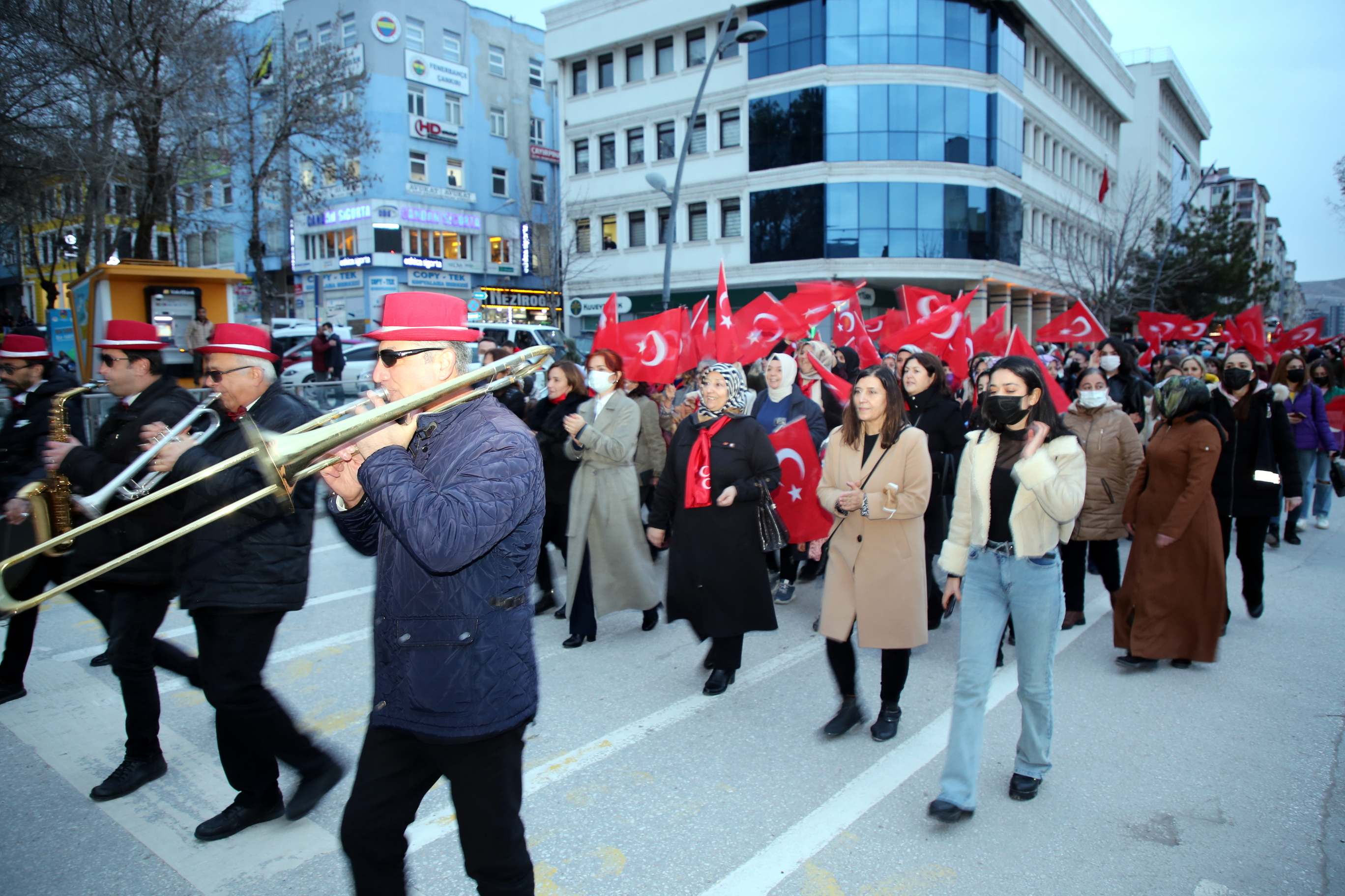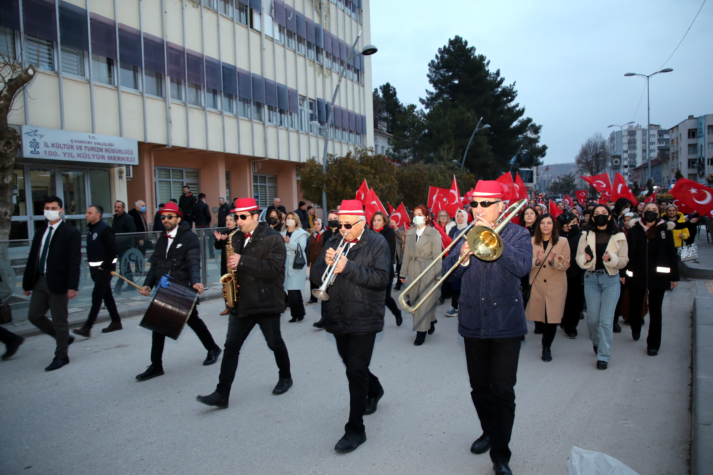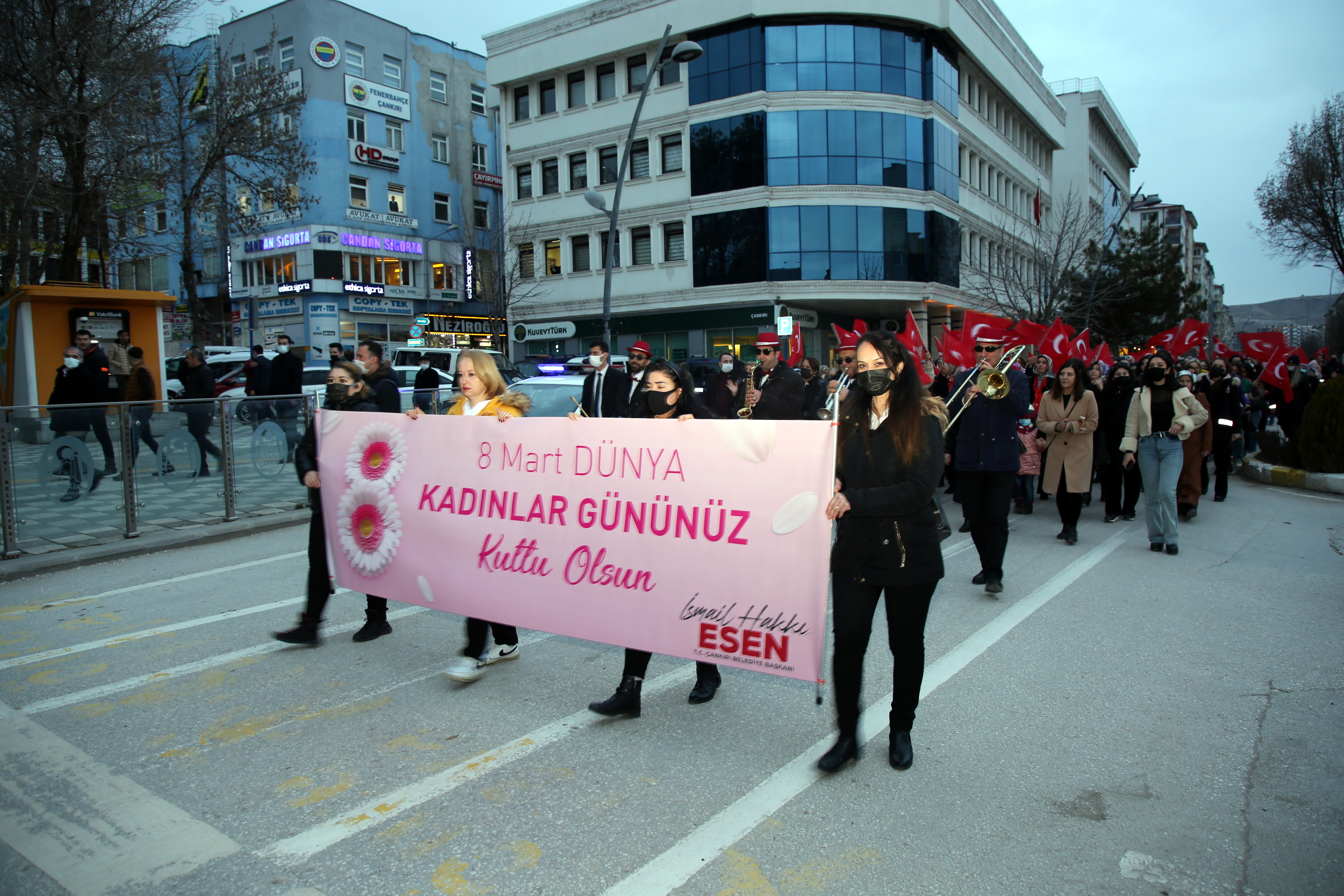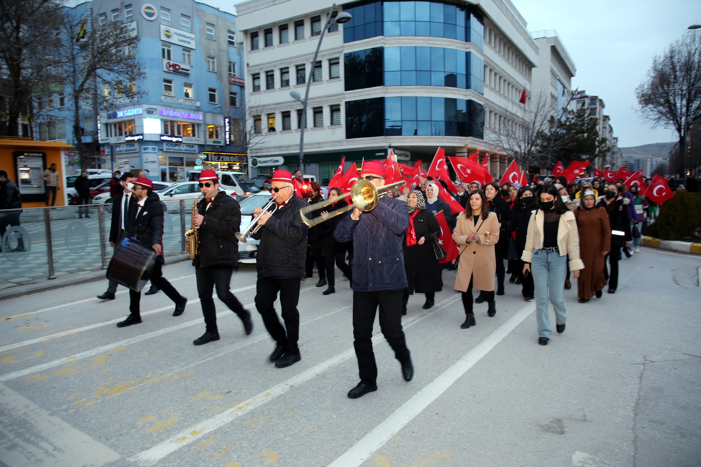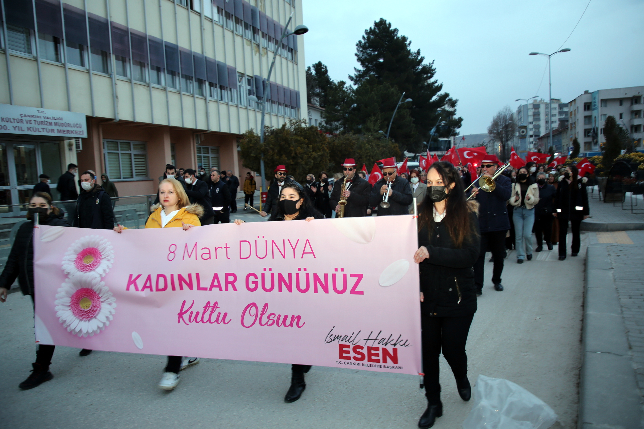 Çankırı’da kadınlar 8 Mart Dünya kadınlar Günü dolayısı ile Türk kadınını tüm dünyaya örnek olacak şekilde sosyal ve siyasal hayatta hak ettiği yere kavuşturan Büyük Önder Gazi Mustafa Kemal Atatürk’ün manevi huzurunda toplandı. Kucaklama Taşı mevkiinden bando eşliğinde kortej yürüyüşü gerçekleştiren kadınlar, şehir merkezindeki Atatürk Anıtı önünde bir araya geldi.
