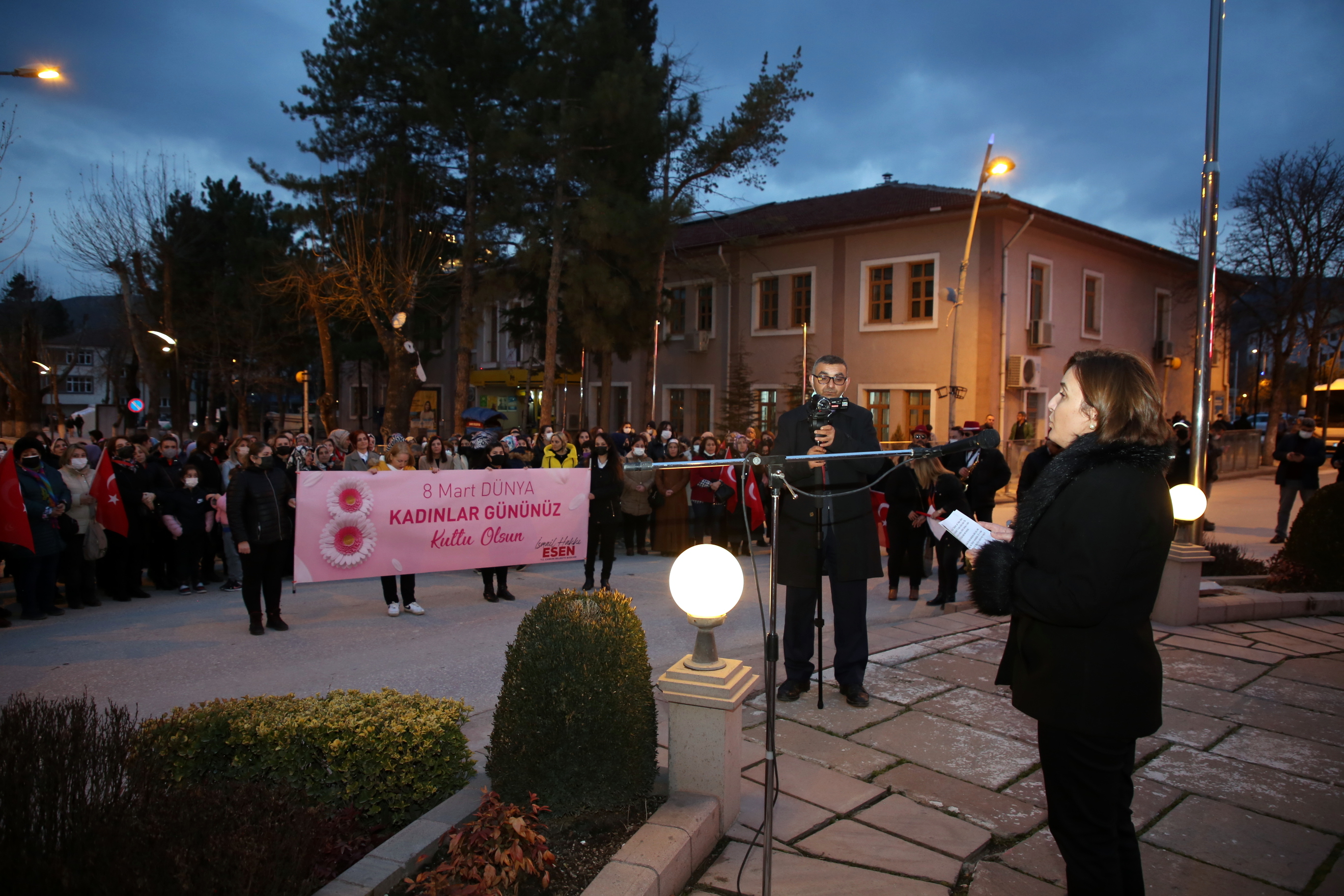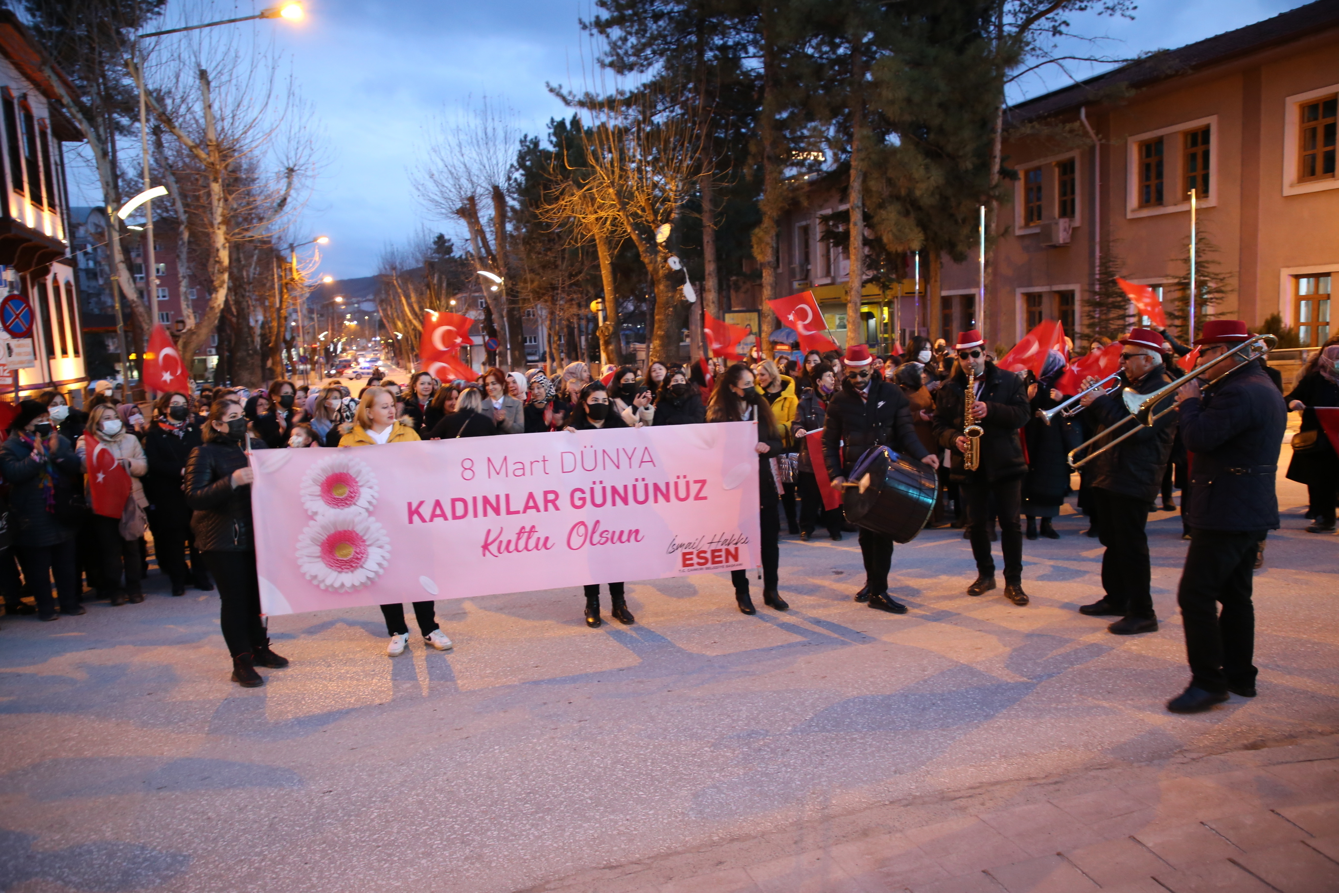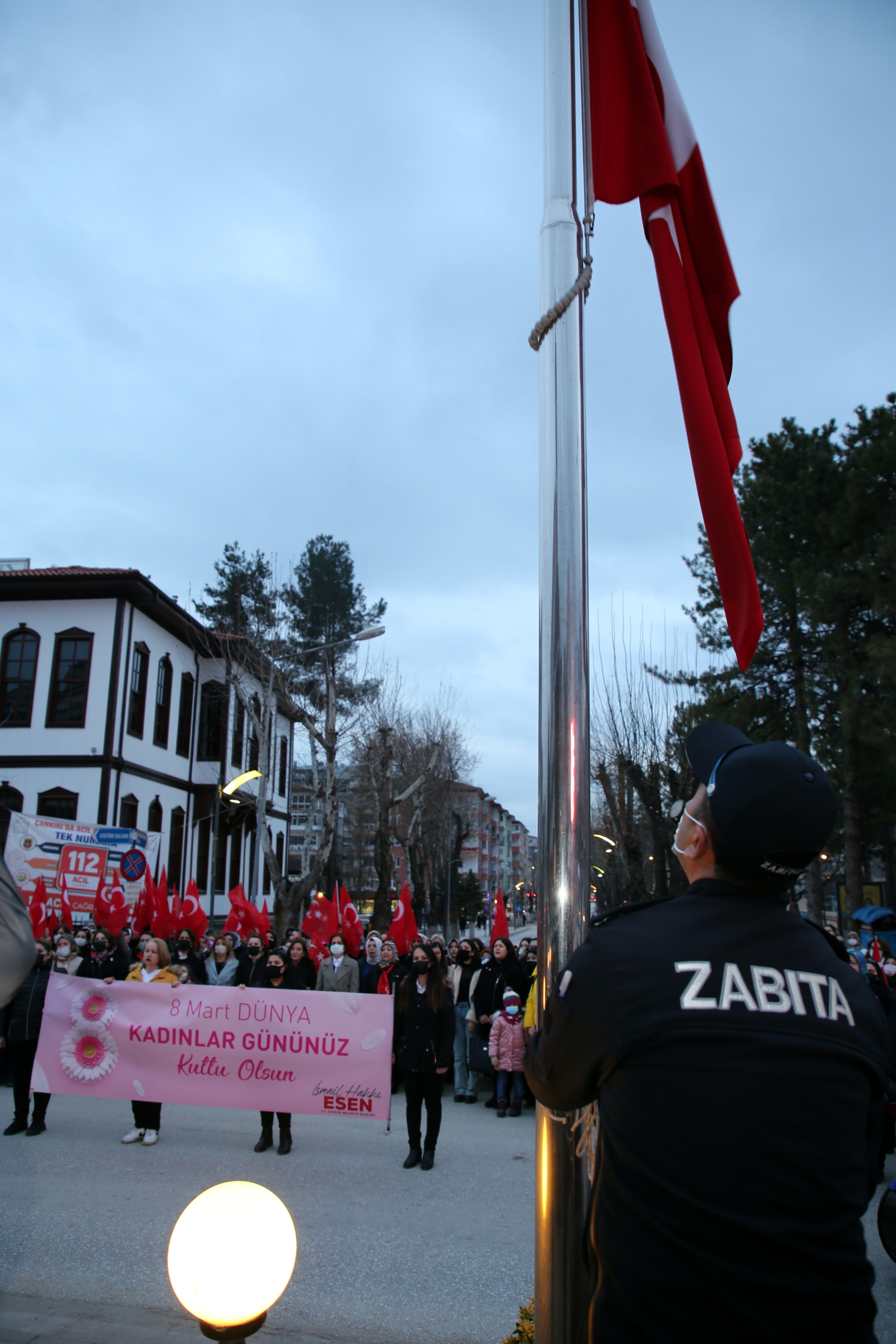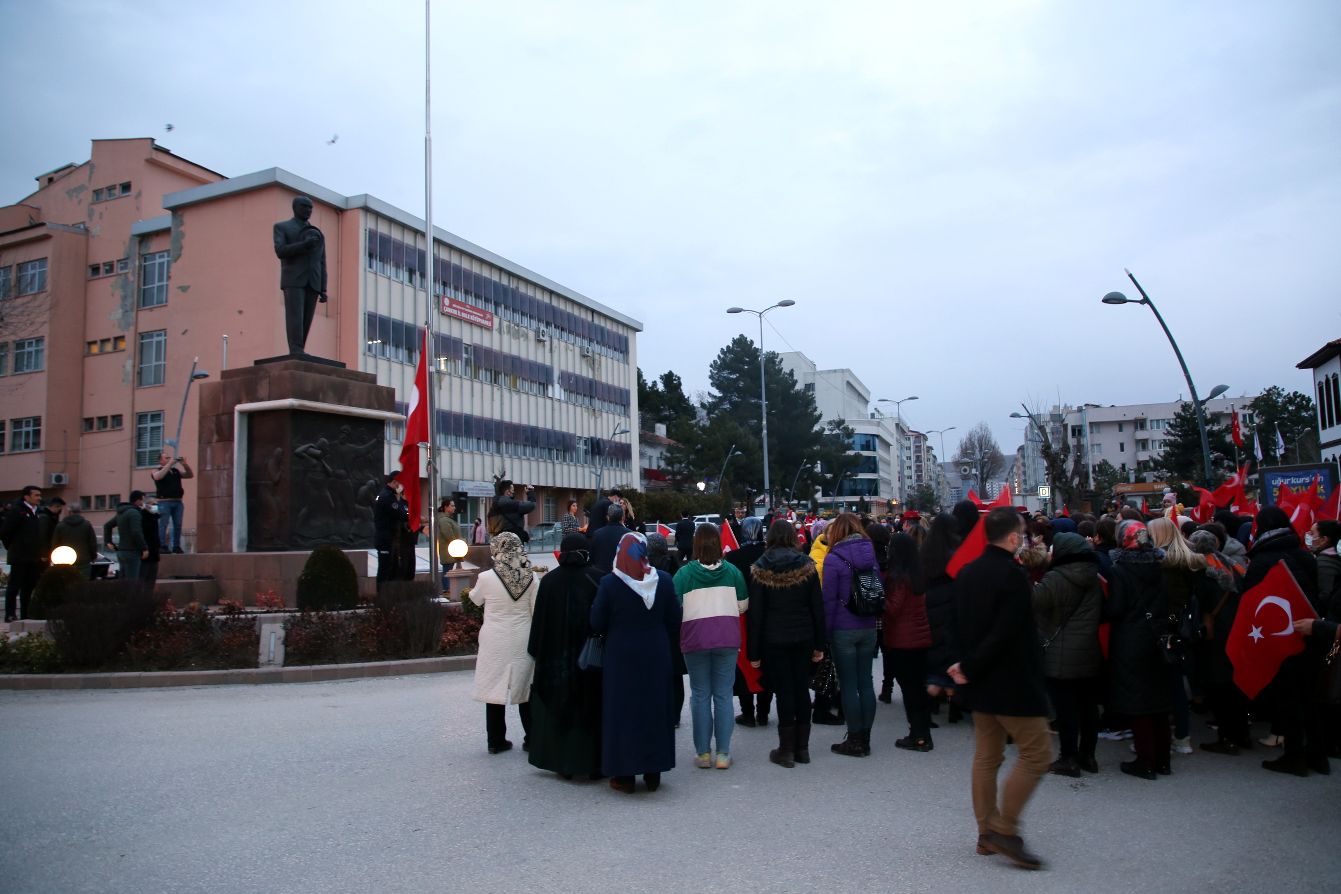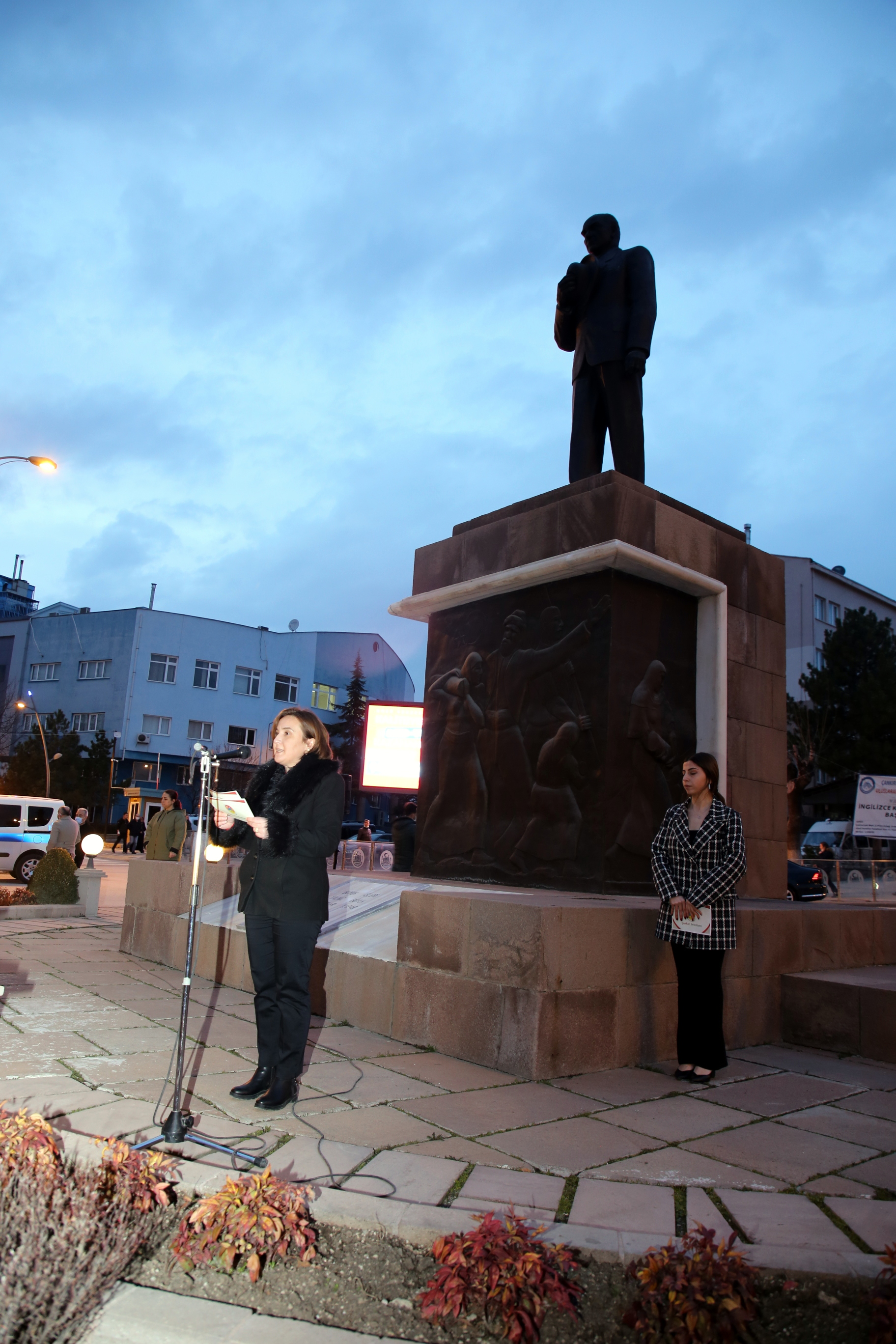 Çankırılı kadınlar, saygı duruşu ve İstiklal Marşı’nın ardından ellerindeki Türk bayrakları ile “Aydın Bir Türk Kadınıyım” şarkısına eşlik etti. Törende kısa bir konuşma yapan Belediye Başkanı İsmail Hakkı Esen’in eşi Betül Esen, kadın vurgusu yaptığı konuşmasında, “Adımız, mesleğimiz, dinimiz, dilimiz ne olursa olsun biz her yerdeyiz. Ve bizim kabul edilmesi gereken bir ismimiz var: Kadın. Kadın, ne erkeğin gerisinde ne de erkeğin ilerisinde. Büyük Önder Gazi Mustafa Kemal Atatürk’ün de öngördüğü gibi hep yan yana, aynı hizada, aynı haklarla… Bu açıdan Türk kadınını yücelten bir dünya lideri olan Ata’mızın huzurunda olmak gurur veriyor bizlere. Onun da söylediği gibi “Kadınlarını geri bırakan toplum, geride kalmaya mahkûmdur.” dedi. Esen, tüm kadınlara şiddetin, tacizin, emek hırsızlığının, hak ihlallerinin konuşulmadığı, dili ve vicdanı sevgiden geçen bir dünya diledi.