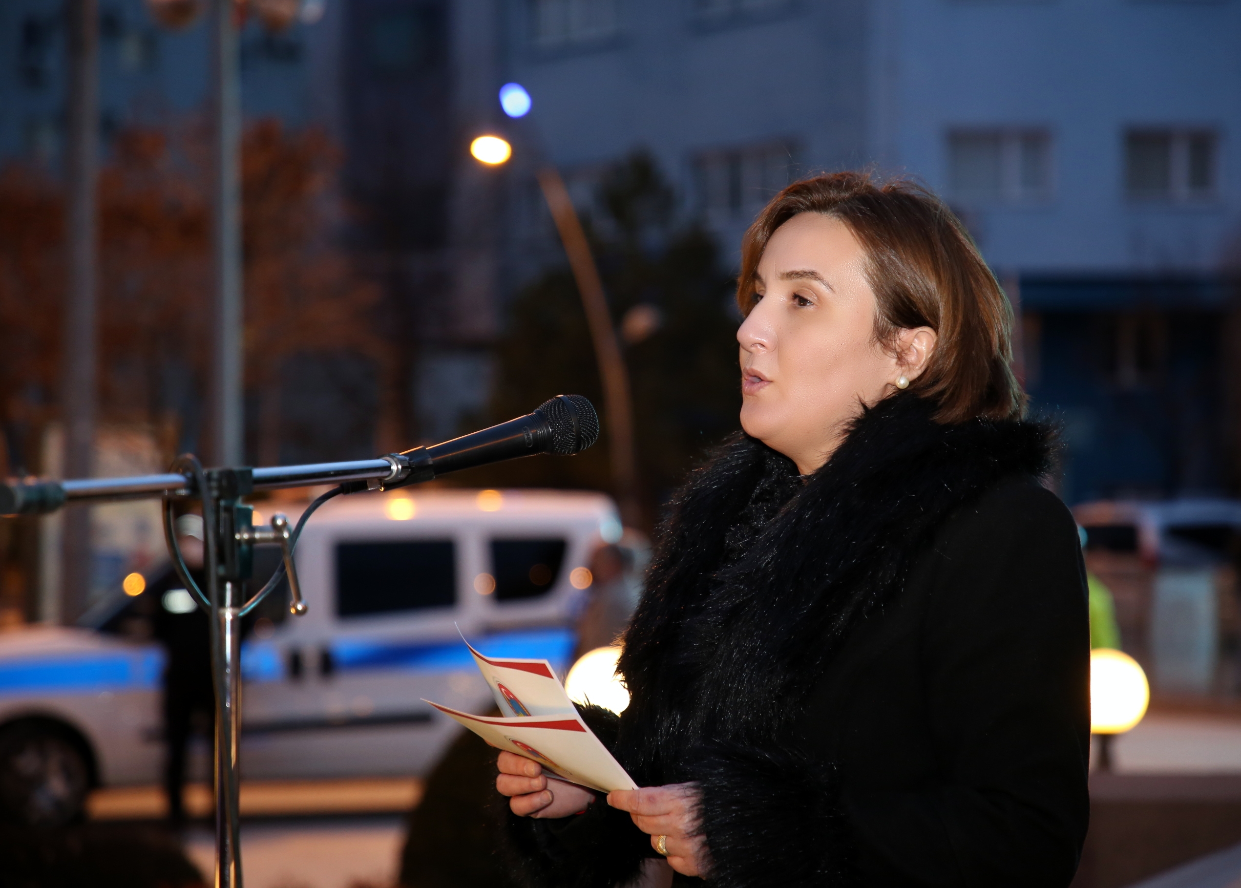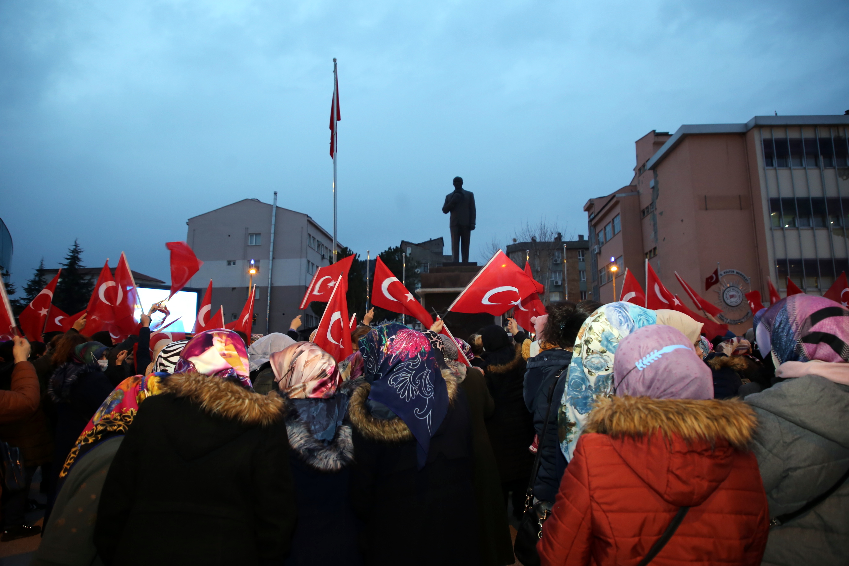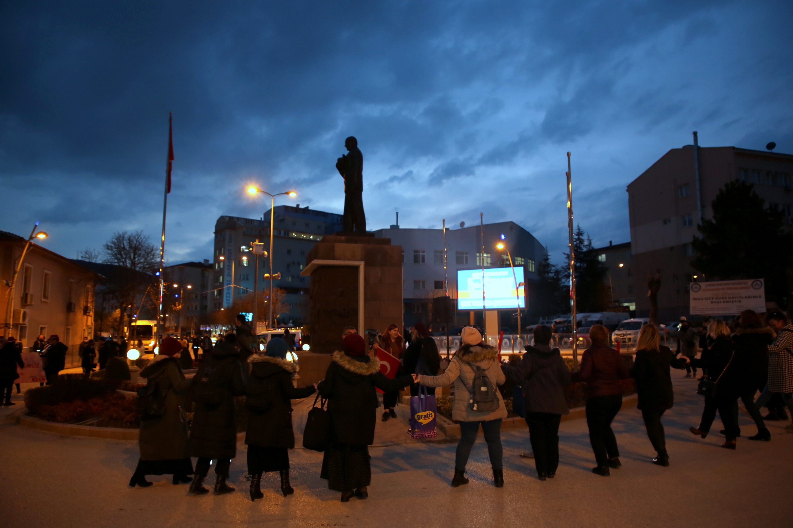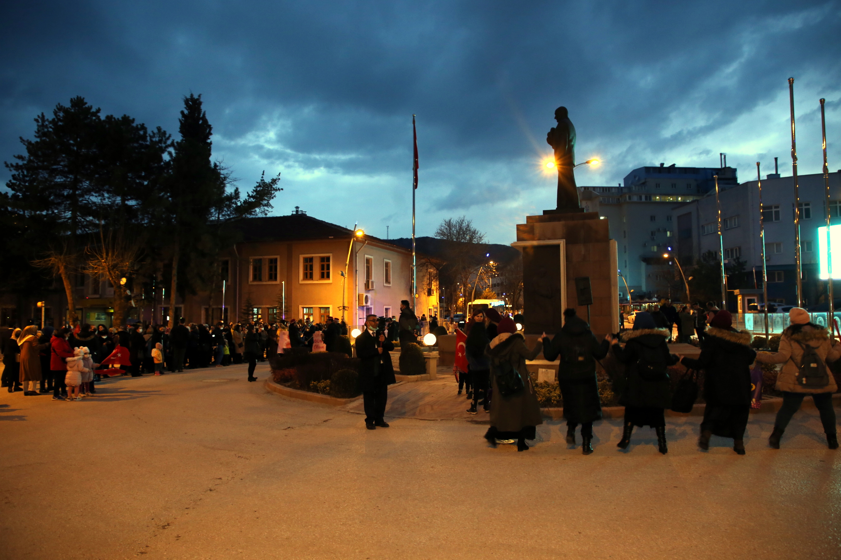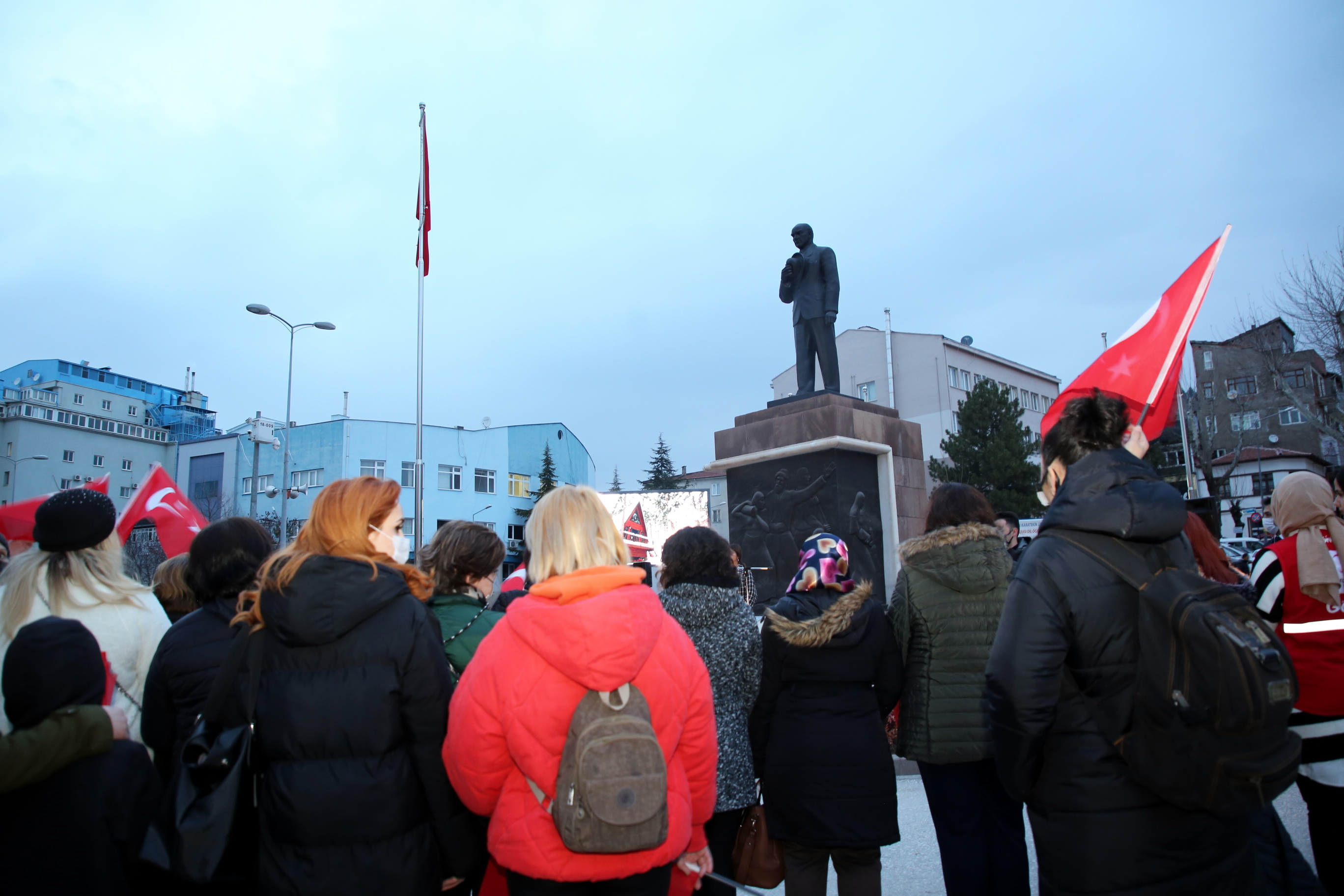 Çankırılı kadınlar, saygı duruşu ve İstiklal Marşı’nın ardından ellerindeki Türk bayrakları ile “Aydın Bir Türk Kadınıyım” şarkısına eşlik etti. Törende kısa bir konuşma yapan Belediye Başkanı İsmail Hakkı Esen’in eşi Betül Esen, kadın vurgusu yaptığı konuşmasında, “Adımız, mesleğimiz, dinimiz, dilimiz ne olursa olsun biz her yerdeyiz. Ve bizim kabul edilmesi gereken bir ismimiz var: Kadın. Kadın, ne erkeğin gerisinde ne de erkeğin ilerisinde. Büyük Önder Gazi Mustafa Kemal Atatürk’ün de öngördüğü gibi hep yan yana, aynı hizada, aynı haklarla… Bu açıdan Türk kadınını yücelten bir dünya lideri olan Ata’mızın huzurunda olmak gurur veriyor bizlere. Onun da söylediği gibi “Kadınlarını geri bırakan toplum, geride kalmaya mahkûmdur.” dedi. Esen, tüm kadınlara şiddetin, tacizin, emek hırsızlığının, hak ihlallerinin konuşulmadığı, dili ve vicdanı sevgiden geçen bir dünya diledi.