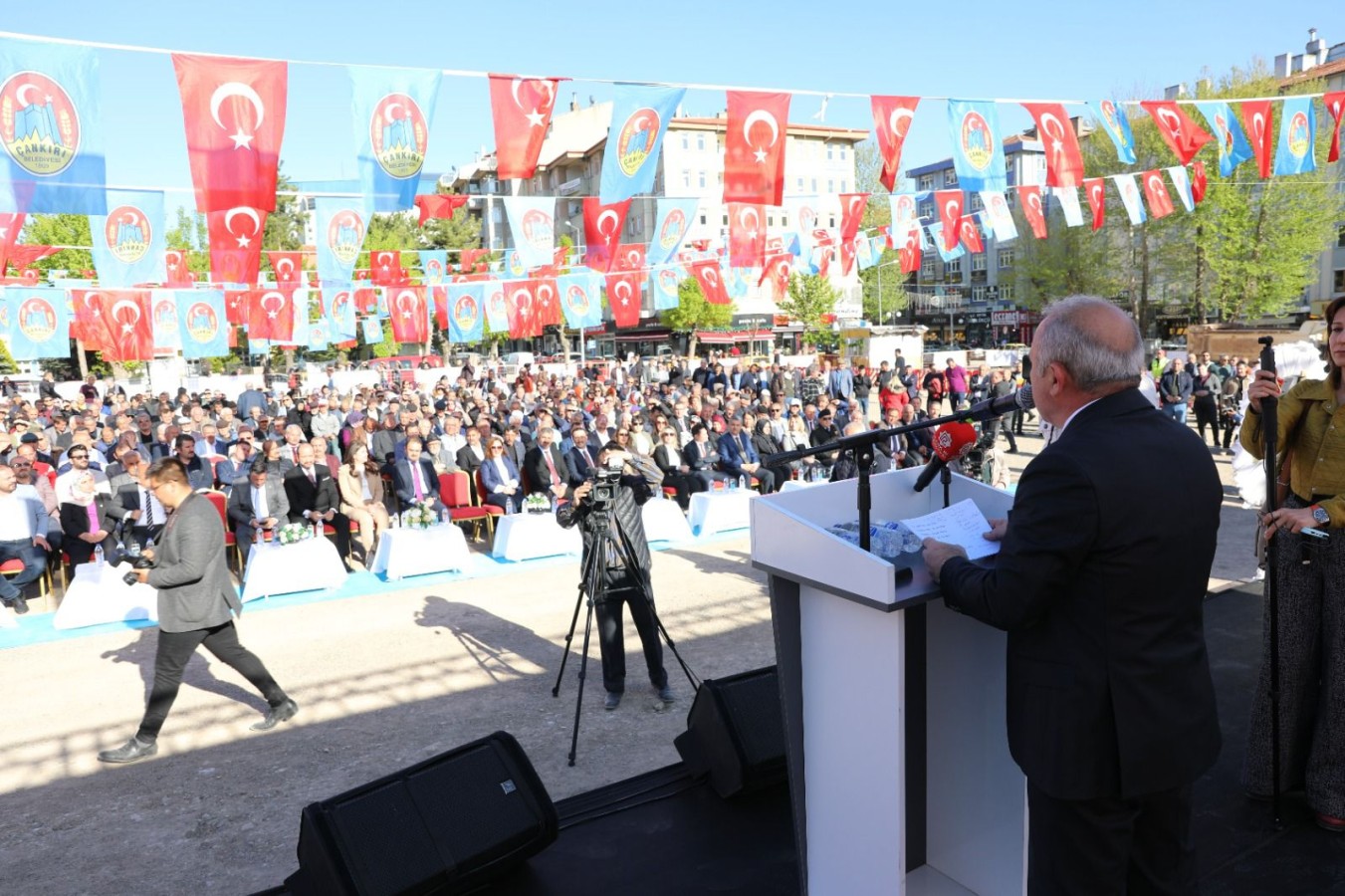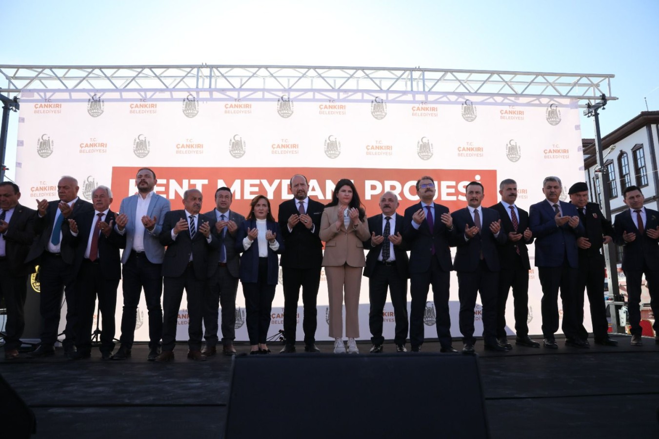 Esen, “Çankırı’nın yıllardır dilinde pelesenk olan ve benim de göreve geldiğimden beri mücadele verdiğim Meydan Projesi’nin hayata geçirilme vakti gelmiştir. Öncesinde ne yaptık? 1972 yılında Belediye borçları karşılığında SGK’ya devredilen arsayı, 50 yıl sonra yeniden kendi öz bütçemizle satın aldık. Akabinde Eski Valilik binası yanında bulunan alandan itibaren yıkım çalışmalarını tamamladık. Bugün temelini atacağımız Kent Meydanımız sayesinde, yer altı otoparkı ve AFAD toplanma alanı gibi sorunlara da neşter vuracağız. Bir yıldır söylüyoruz, bir taşla üç kuş vuracağız diye. Elimizde cevher gibi bir şehir var. Biz, o cevheri işlemeye geldik. Bizim gündemimizde her daim Çankırı var. Tüm çabamız ve emeğimiz, şehrimizin sorunlarını çözmek, insanımızın yaşam standardını iyileştirmek, bu şehri mutlu insanların kenti yapmak üzerinedir. Her şeye, tüm aksiliklere rağmen sizlere nefes alacağınız bir meydan yapıyoruz. Bolluk da, bereket de, hareket de, dinlenmek de, eğlenmek de bu meydanda olacak. Burası Çankırı’nın hür meydanı olacak.” dedi.