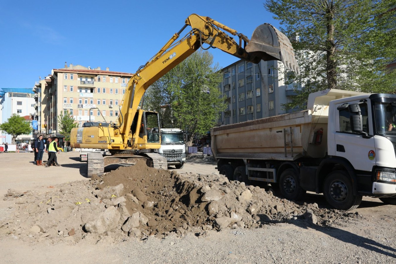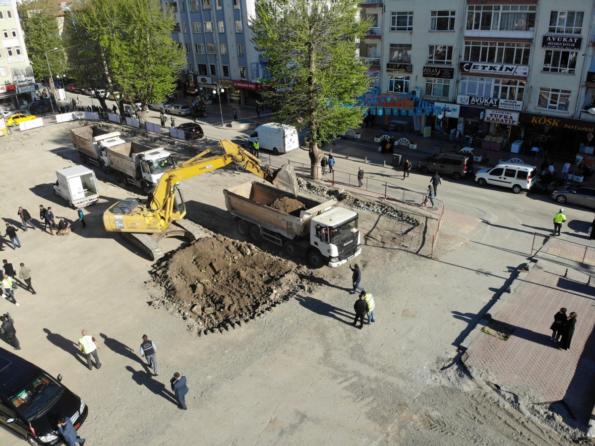 Belediye Başkanı İsmail Hakkı Esen’in talimatı ile Kent Meydanı yapımı için ilk kazma dualar eşliğinde vuruldu.