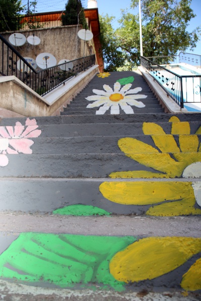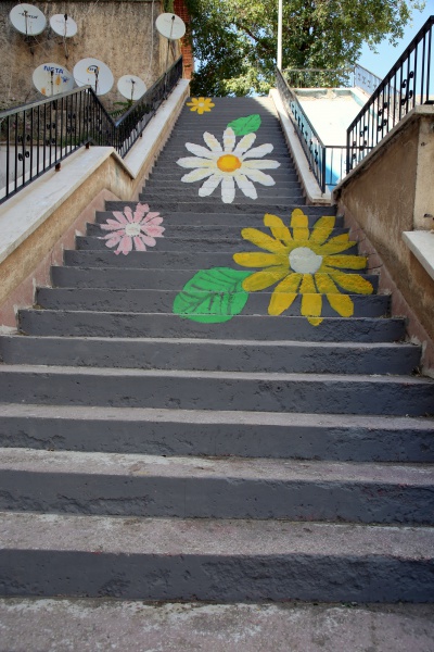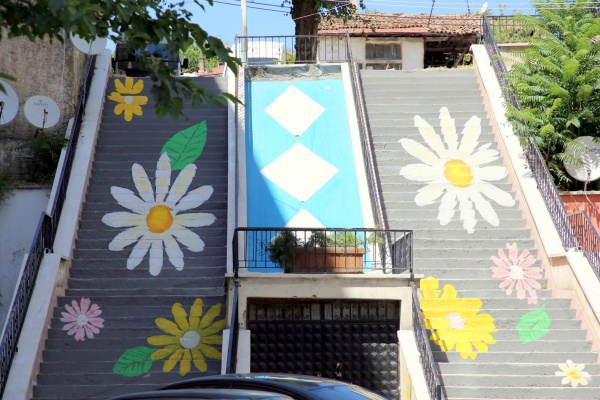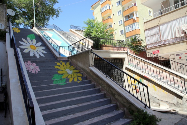 Çankırı’nın en işlek yerlerinden Atatürk Bulvarı’na inen merdivenlere çiçek resimleri uygulandı. Yeşil yapraklı rengârenk papatyalar ile süslenen merdivenler, görenlerin içini açtı.
