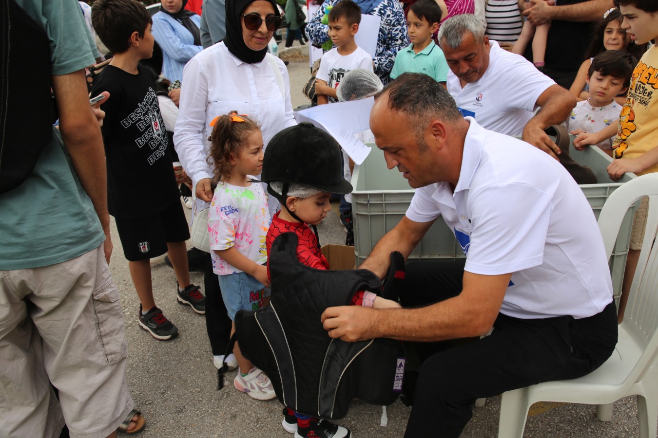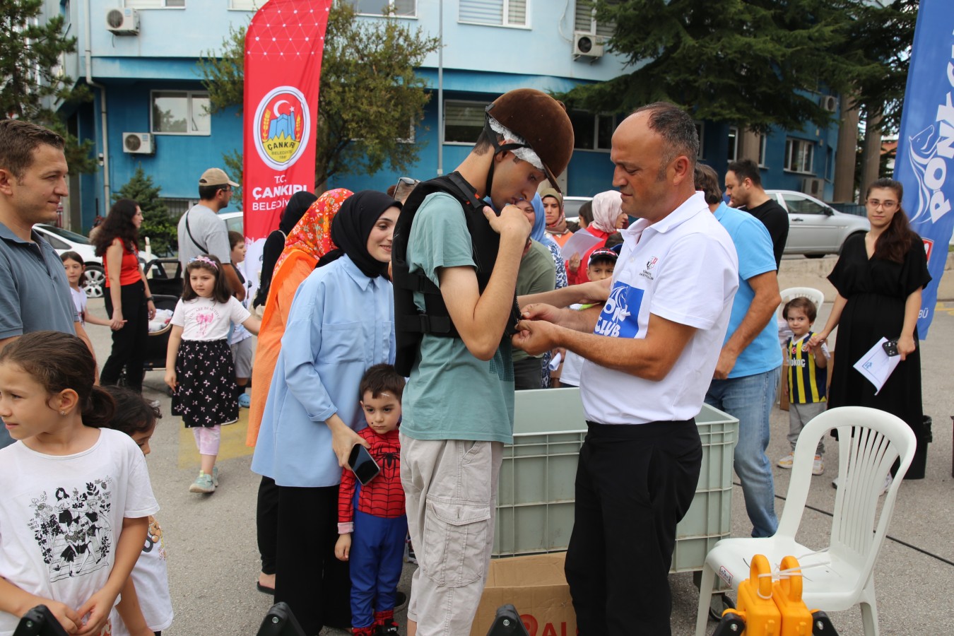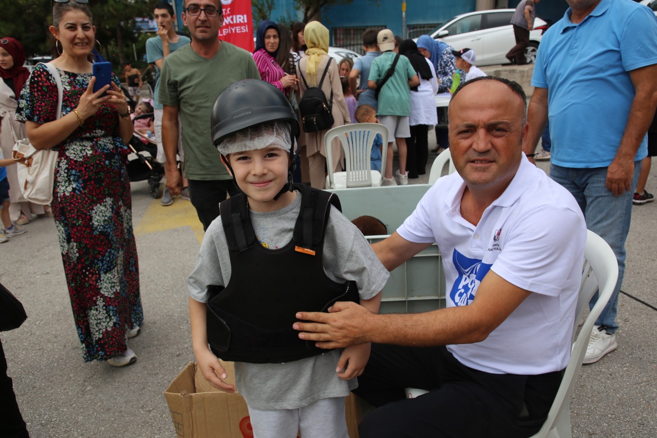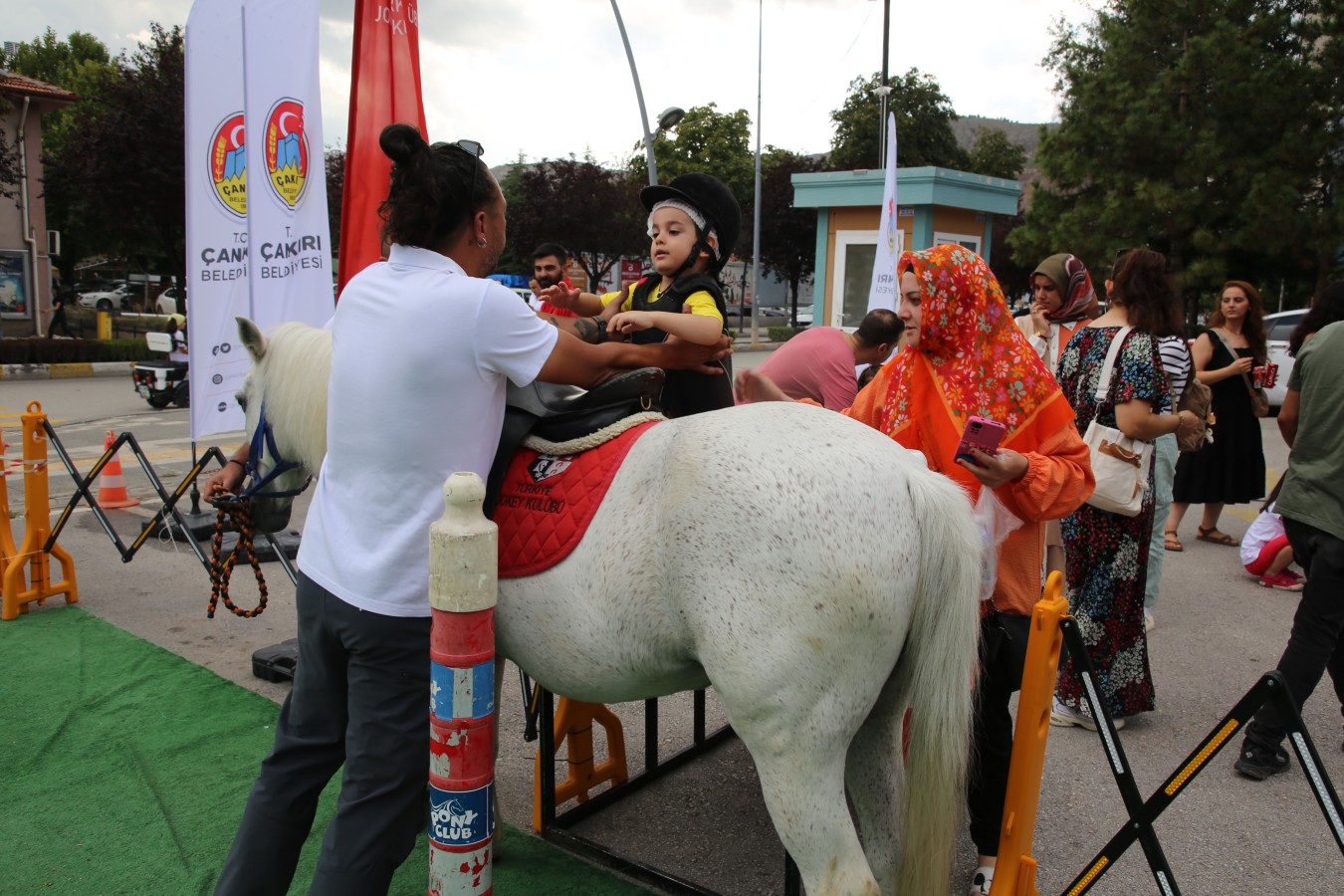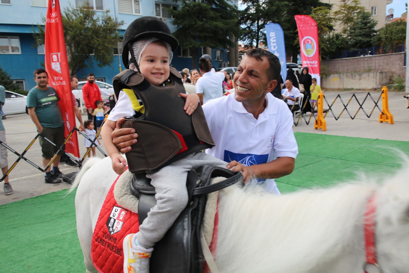 Çankırı Belediyesi işbirliğinde gerçekleşen etkinliğe katılan çocuklar önce yetkililerden atlar hakkında bilgi aldı daha sonra koruyucu ekipmanları giyerek ata binmenin zevkini yaşadılar.