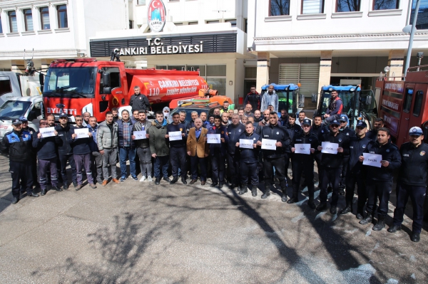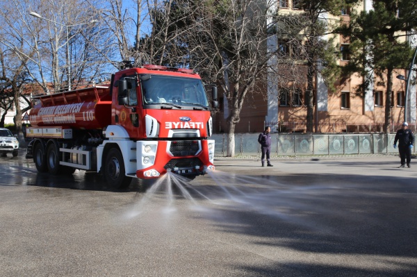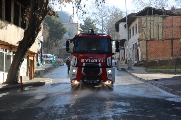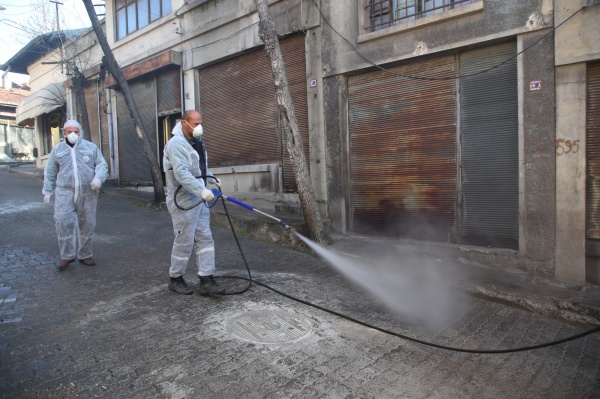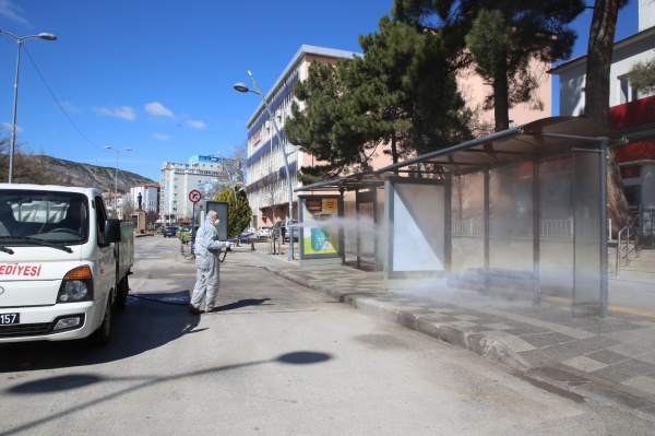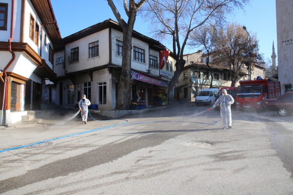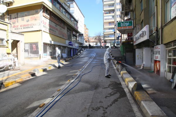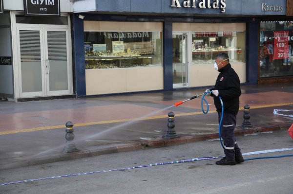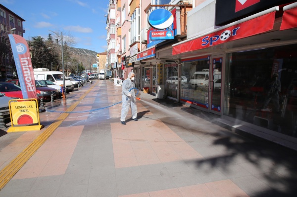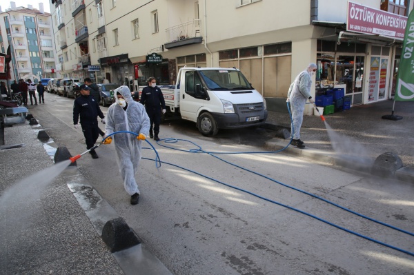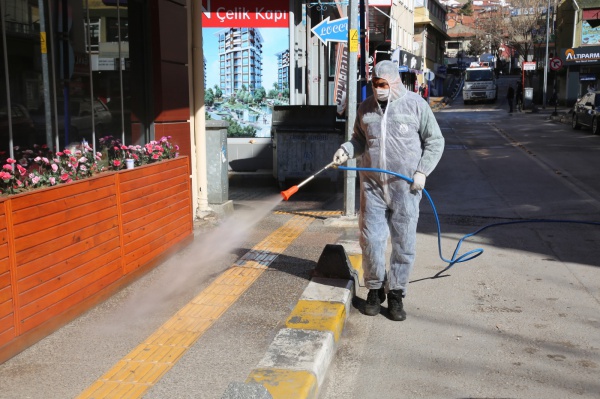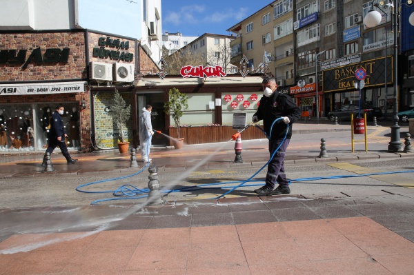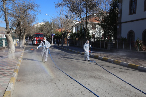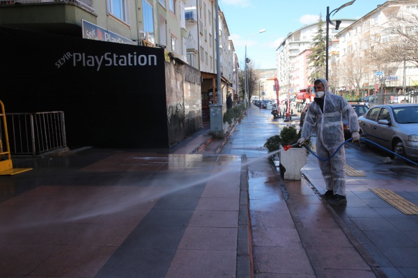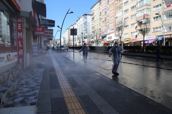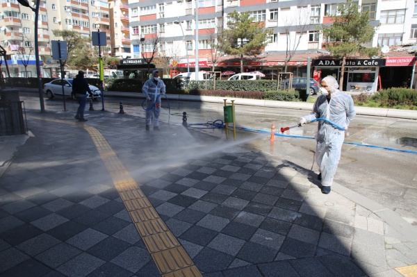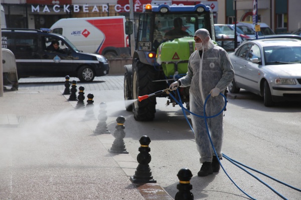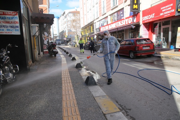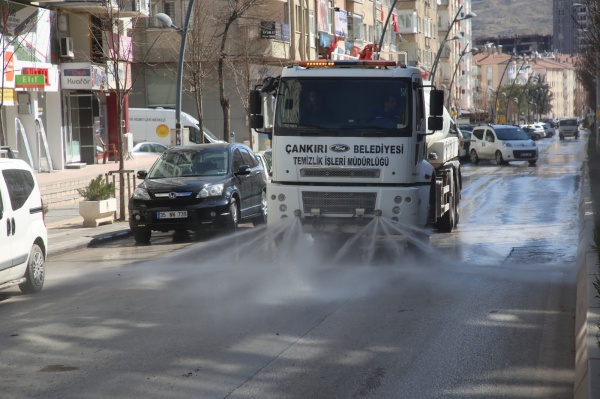 Vatandaşların yoğun olarak bulunduğu alanlarda titiz bir dezenfekte çalışması yürüten Çankırı Belediyesi, cadde ve sokaklara el attı. Belediye Başkanı İsmail Hakkı Esen koordinesinde yürütülen çalışmalarda; Park ve Bahçeler Müdürlüğü ile Temizlik İşleri Müdürlüğü ekipleri başta olmak üzere birçok personel sahaya çıktı. Zabıta Müdürlüğü ekipleri dezenfeksiyon işlemi öncesinde araçları çektirerek yol emniyeti sağlarken, İtfaiye Müdürlüğüne ait araçlar ve Belediyeye ait tüm tankerler; cadde, sokak ve kaldırımların ilaçlanarak yıkanmasında rol aldı. Büyük Camii ve çevre yollarından başlayan dezenfekte çalışmaları; Mektep Sokak, Hilmi Astarlıoğlu Sokak, Bedesten Sokak, İmaret Caddesi, Mehmet Emin Erişen Sokak, Necati Asım Uslu Caddesi, Alparaslan Türkeş Caddesi, Şehit Mehmet Ata Sokak, Namık Kemal Parıltı Caddesi, Elif Caddesi, Belediye çevresi, Atatürk Bulvarı, Fuar Yolu, Hoca Ahmet Yesevi Camii çevresi, Adnan Menderes Caddesi, Necip Fazıl Kısakürek Sokak, Tevfik Fikret Caddesi, Selahattin İnal Sokak, Manolya Sokak, Zeki Ömer Defne Sokak, Eşikli Aralık Sokak, Akkaya Sokak, Şehit Kadir Yıldırım Sokak, Şehit Pehlivan Tevfik Caddesi, Mehmet Kazım Arar Caddesi, Şehit Astsubay Yüksel Kaya Caddesi, Öztaş Sokak, Terminal Caddesi, Çarşamba Pazarı çevresinde gerçekleştirildi. Çalışmaların diğer bölgelerde de devam edeceğini belirten Belediye Başkanı İsmail Hakkı Esen, “Yerel yönetim olarak bu süreçte elimizden gelen hassasiyeti gösteriyoruz. Aynı duyarlılığı da vatandaşlarımızdan bekliyoruz. Bu zor günleri, birbirimize destek olarak atlatacağız. Birbirimize mesafe koymak zorunda kalmış olabiliriz, ama gerçekte birbirimizi daha çok düşündüğümüz bir zamanı yaşıyoruz. Bir kişinin ihmali başkaları için ağır sonuçlar doğurabiliyor. Lütfen bu sürece destek olalım, bizden beklenen önlemleri alalım. Bizler, sizin için görevimizin başında elimizden geleni yapıyoruz. Vatandaşımızın sağlığı için dezenfekte çalışmalarını özveri ile yürüten mesai arkadaşlarıma da canı gönülden teşekkür ediyorum.” diye konuştu.