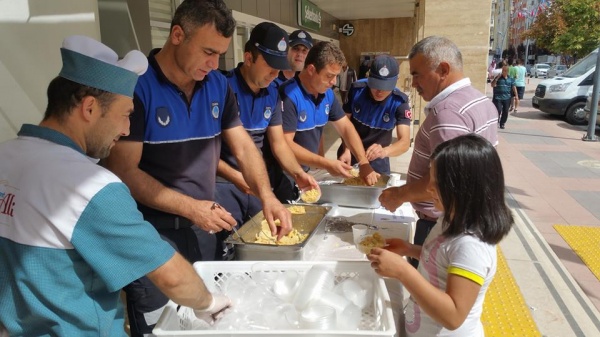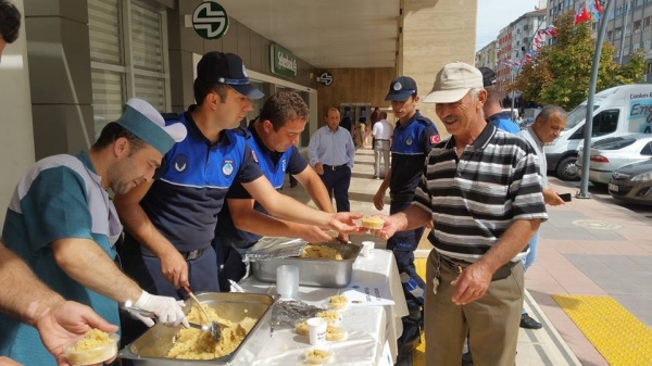 Zabıta Haftası tüm yurtta farklı etkinlikler ile kutlanırken değişik bir uygulama da Çankırı Belediyesi zabıta ekiplerinden geldi. Çankırı’daki zabıta ekipleri, Zabıta Haftası’nı hijyenik ortamda özenle yaptırdıkları helvayı Belediye önünde esnafa ve vatandaşa ikram ederek kutladı. Etkinliği vatandaşlar da memnuniyet ile karşıladı. Helvalarını alan vatandaşlar, zabıta ekiplerinin bu özel haftalarını kutlamayı da ihmal etmedi.