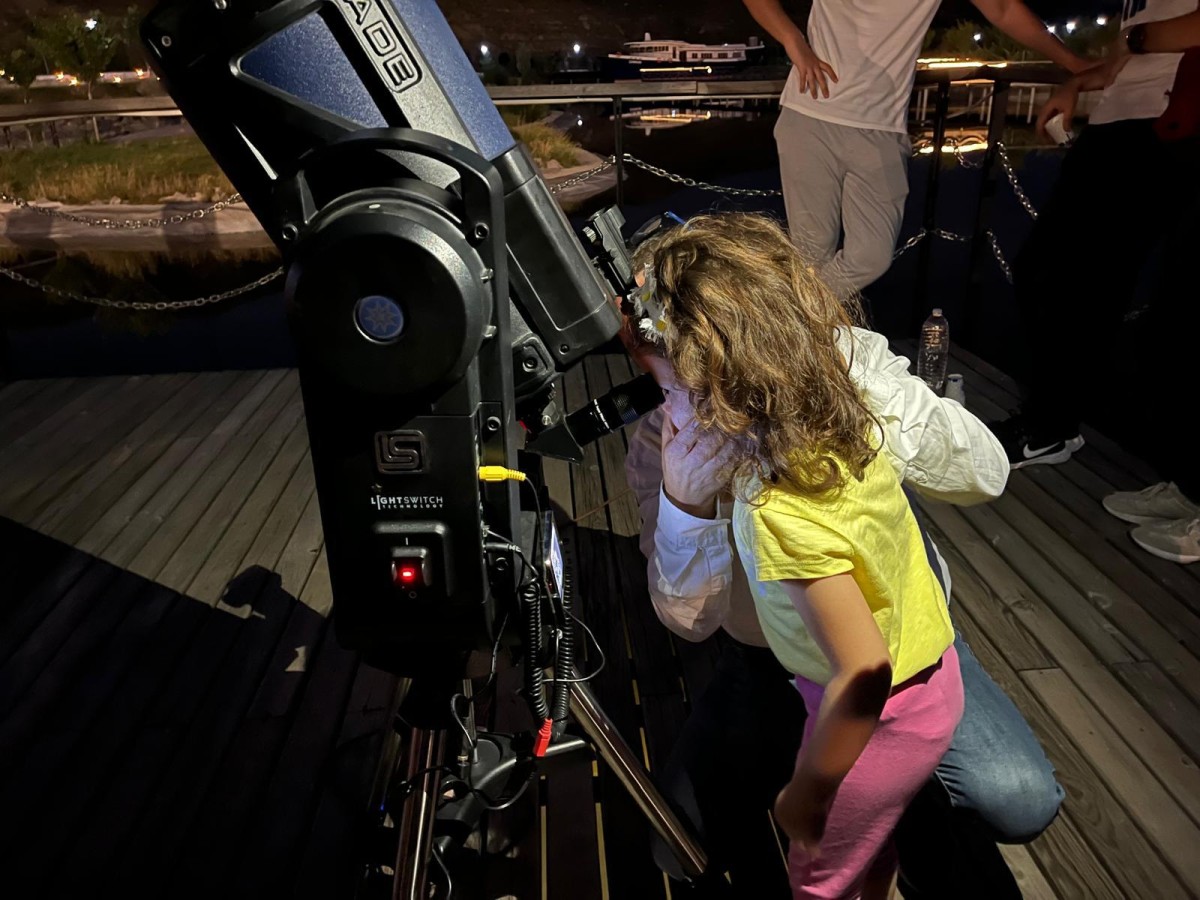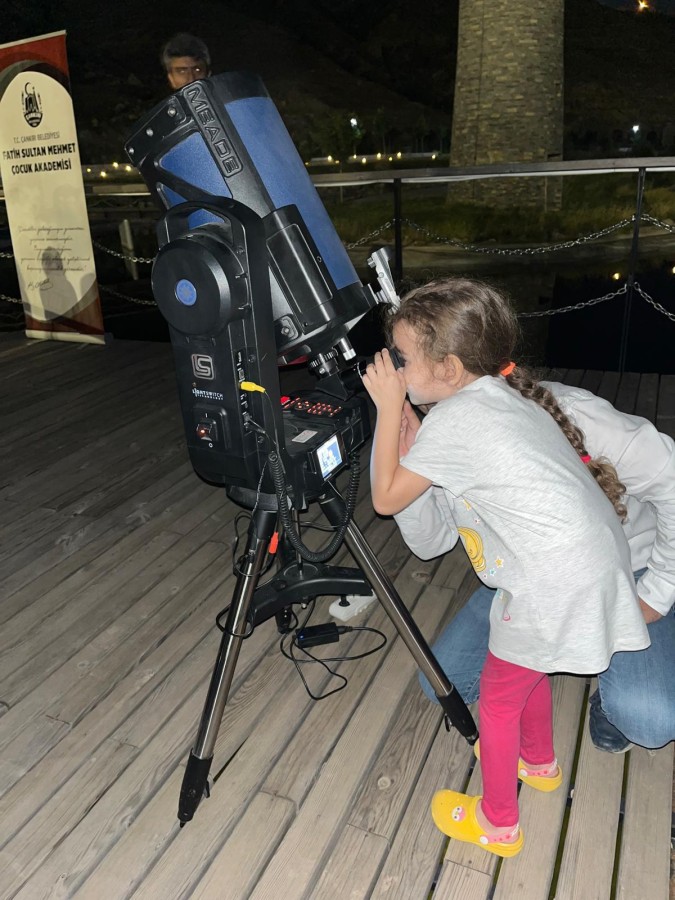 Çankırı Belediyesi Fatih Sultan Mehmet Çocuk Akademisi, 55 yıl önce Neil Armstrong’un Ay’a ilk ayak bastığı günü bilimsel bir etkinlik ile kutladı. Recep Tayyip Erdoğan Parkı’nda düzenlenen “Bizim Çocuklar Uzayı Gözetliyor” etkinliğine katılan çocuklar, teleskop ile Vega Yıldızı’nı ve Dolunay’ı izledi. Yıldızların şeklinin yuvarlak olduğunu ve Ay’ın üzerindeki kraterleri gözlemleyen çocuklar, şaşkınlık yaşadı. Eğlenceli ve bilgilendirici etkinlik çocuklardan ve ailelerinden tam not aldı.