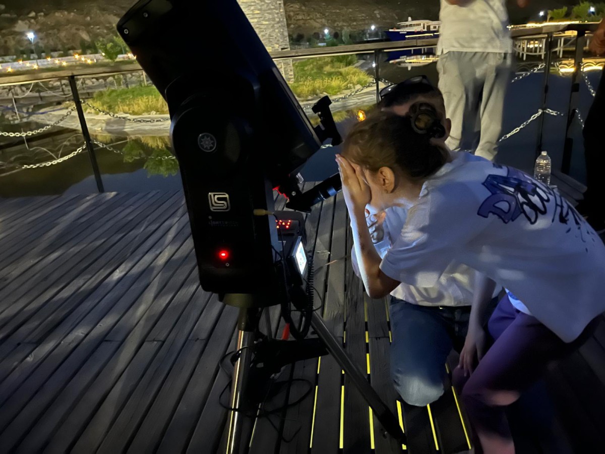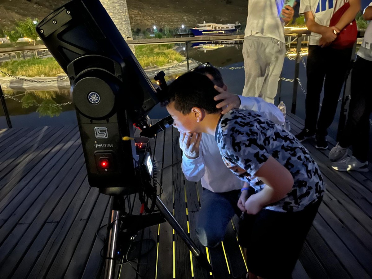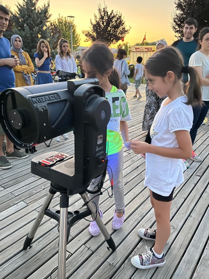 Çankırı’da çocuklar, insan için küçük, ama insanlık için büyük bir adımın atıldığı Ay’a zoom yaptı. Astronom Tamer Akın’dan evren hakkında bilinmeyenleri dinleyen çocuklar, meraklı sorularına cevap bulduktan sonra teleskop ile gökyüzünü inceledi. Ay yükselene kadar Vega Yıldızı’nı inceleyen çocuklar, yıldızların şeklinin çizdikleri gibi olmadığını gözlemledi. Daha sonra yamaçtan yükselen Ay’a zoomlanan teleskop, çocuklara eşsiz bir deneyim yaşattı.