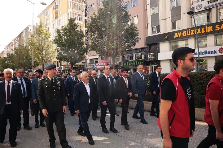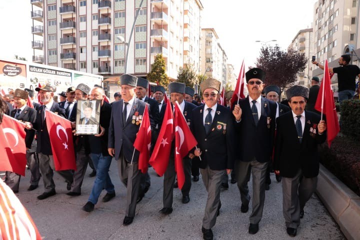 Çankırı’da öğrenciler, vatandaşlar ve protokol, kahramanlar ile birlikte yürüdü. Türkiye Cumhuriyeti kurucusu Mustafa Kemal Atatürk’e Türkiye Büyük Millet Meclisi tarafından 19 Eylül 1921’de Mareşallik rütbesi ve Gazilik unvanının verilmesinin 103. yıl dönümünü dolayısı ile düzenlenen “Kahramanlarla Yürüyoruz” kortejinin ön safında Çankırılı Gaziler yer aldı. Gurur madalyalarını takıp ay yıldızlı bayraklarla yürüyen gaziler, Kucaklama Taşından başlayarak Atatürk Anıtında düzenlenen tören alanına geldi.