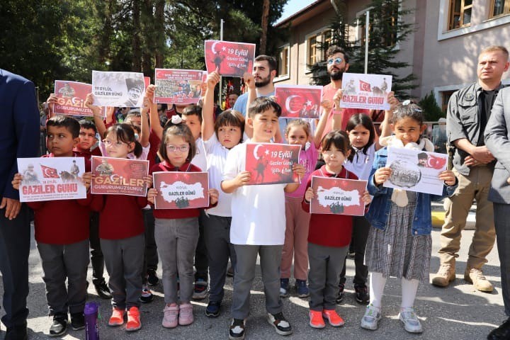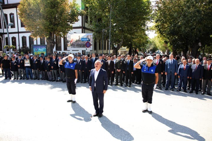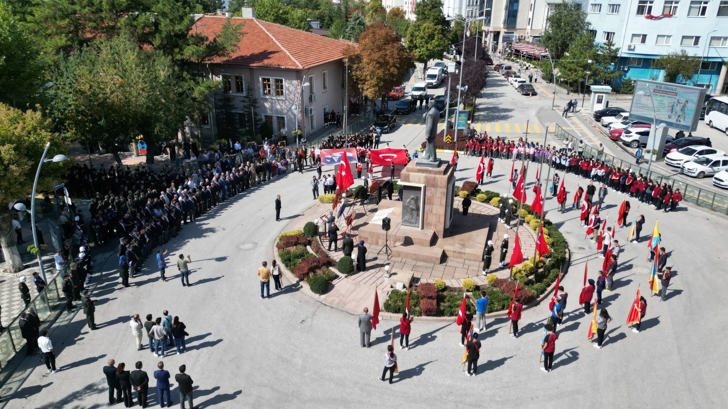 Saygı duruşu ve İstiklal Marşı ile başlayan tören, çelenk sunumlarından sonra Garnizon Komutanlığı tarafından görevlendirilen bir subayın günün anlam ve önemini belirten konuşması ile devam etti. Gazi Hüseyin Eroğlu ve bir öğrencinin okuduğu şiirlerden sonra konuşan Muharip Gaziler Derneği Başkanı Ahmet Çelik, üzerinde yaşadığımız toprakların vatana dönüşmesinin ve bayrağımızın özgürce dalgalanmasının şehitlerimizin ve gazilerimizin emsalsiz fedakârlıklarının eseri olduğunun altını çizdi.