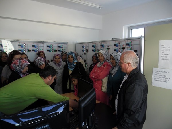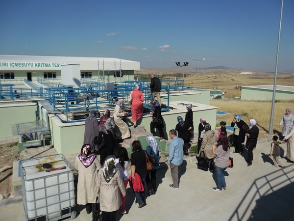 35 bayanın katıldığı gezide Güldürcek Barajından çıktıktan sonra 6 kilometre mesafedeki son derece modern arıtma tesisinde suyun gördüğü işlemler Çankırı Belediyeleri Su ve Hizmet Birliği Müdürü Yakup Manici ile Belediyemiz Çevre Mühendisi Recep Özen tarafından detaylı olarak anlatıldı.