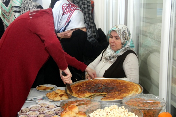 Yerli Malı Haftası etkinliğinde hanımların el emeği birçok yerli üretim ürün, hazırlanan masalar üzerinde teşhir edildi. Hanımlar pıhtıdan yaprak sarmasına, açma cevizli börekten kızılcık ekşisine kadar hazırladıkları ulusal ve yerel ürünleri hep birlikte paylaştı.