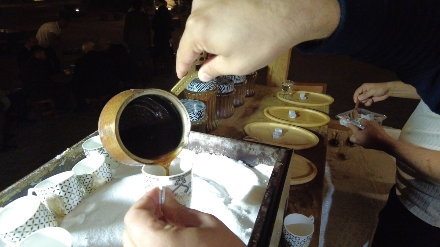 Esen, röportaj sonunda konukları ile birlikte tuzda Türk Kahvesi içti.