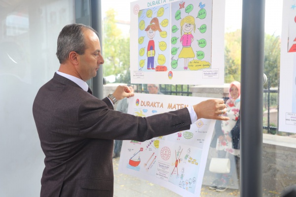Etkinlik, protokolün öğrenciler ile birlikte matematik afişlerini duraklara asması ile son buldu.