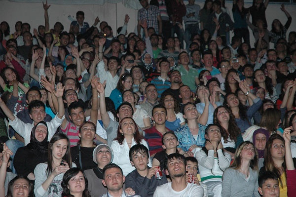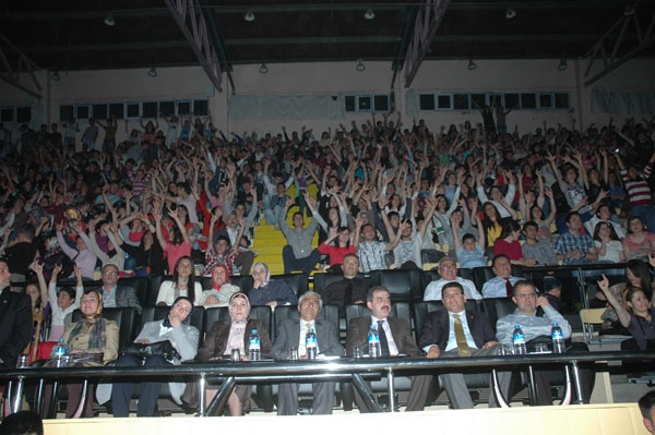 Ünlü sanatçı Murat Kekilli’ye hep bir ağızdan eşlik eden gençler zaman zaman “Murat..Murat” tezahüratlarıyla salonu inlettiler.