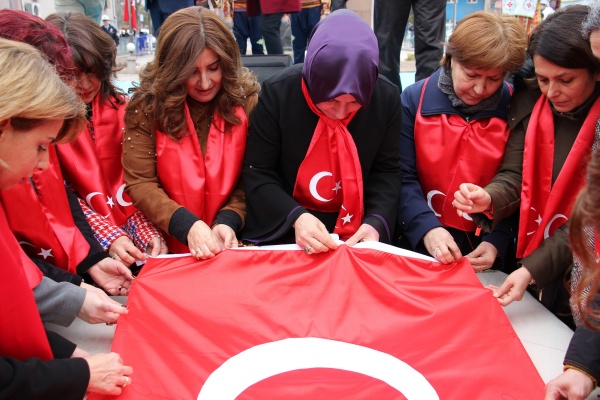 Bugün olduğu gibi tarihte de acıyla bilenen, sabırla yoğrulan, evlatlarıyla sınanan bir milletin kadını olduklarını belirten Meydaneri, "Türk milletinin yüksek varlığına nereden bir tehlike gelecek olsa, işte o vakit biz Türk kadınları, erkeklerinin ve evlatlarının, vatanının ve bayrağının yanında her daim hazır bekleriz." dedi. Vatan müdafaasından asırlar önce nasılsa yine aynı inançla bir olduklarını kaydeden Meydaneri, şöyle konuştu: