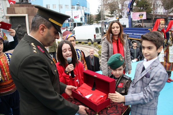 Çankırı’da düzenlenen Mehmetçiğe Destek mitingine kadınlar damgasını vurdu. Nene Hatunların, Şerife Bacıların, Yanığın Eminelerin torunları Çankırılı kadınlar, İstiklal mücadelesine destek veren kahraman kadınlar gibi elleri ile Türk bayrağı dikti. İki adet dikilen Türk bayrağının biri Harekât bitene kadar Çankırı Semalarında dalgalanmak üzere göndere çekilirken diğer Türk Bayrağı da Afrin’e gönderilmek üzere öğrenciler eşliğinde Jandarma Kıdemli Yüzbaşı Ergin Yılmaz’a teslim edildi. Daha sonra şehitler için okunan Kur’an-ı Kerim hatimlerinin duası yapıldı.