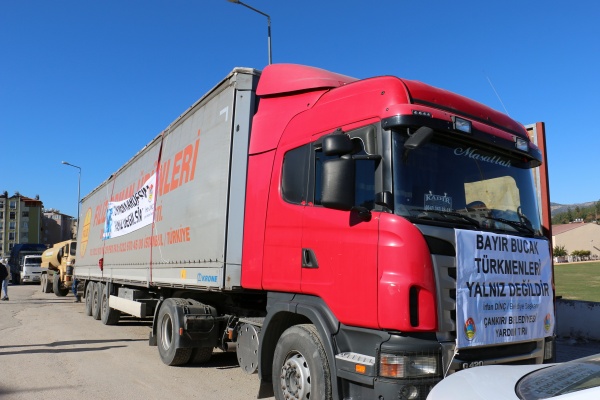 Suriye’nin kuzeyinde sınırımıza sıfır noktasında yerleşik olan Bayır Bucak Türkmenleri kaos ortamının yaşandığı 2012 yılından bu yana Suriye rejimi askerlerince havadan ve karadan, son zamanlarda da Rusya uçakları tarafından havadan bombalanmak suretiyle soykırımla karşı karşıya bulunuyor. Yaşanan drama dünya sessiz kalırken insani temel ihtiyaç malzemelerini karşılamak üzere Türkiye’nin her yerinden Bayır Bucak Türkmenlerine yardım yağıyor. Çankırı Belediyesi’nin düzenlediği 10 günlük yardım kampanyasına Çankırılılar duyarsız kalmadı ve Bayır Bucak Türkmenleri için 1 tır ve 1 kamyon dolusu malzeme toplandı.