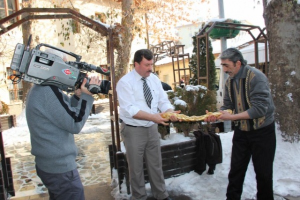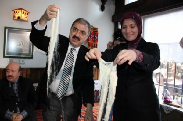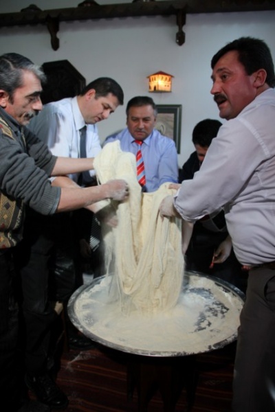Belediyemiz Buğday Pazarı (Hazımiye) Medresesi’nde basın mensupları önünde başlatılan çekme helvası yapımının bundan böyle kış ayları boyunca Cuma günleri Cuma namazını takiben yapılacağı belirtildi.