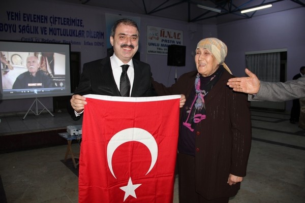 Programın sonunda Belediye Başkanımız İrfan Dinç ve eşi Zeynep Dinç tarafından konuklara çiçek, kıravat ve eşarp hediye edilirken, emekli öğretmen Munise Yüksek tarafından da Belediye Başkanımız İrfan Dinç’e günün anlam ve önemine binaen Türk Bayrağı takdim edildi.